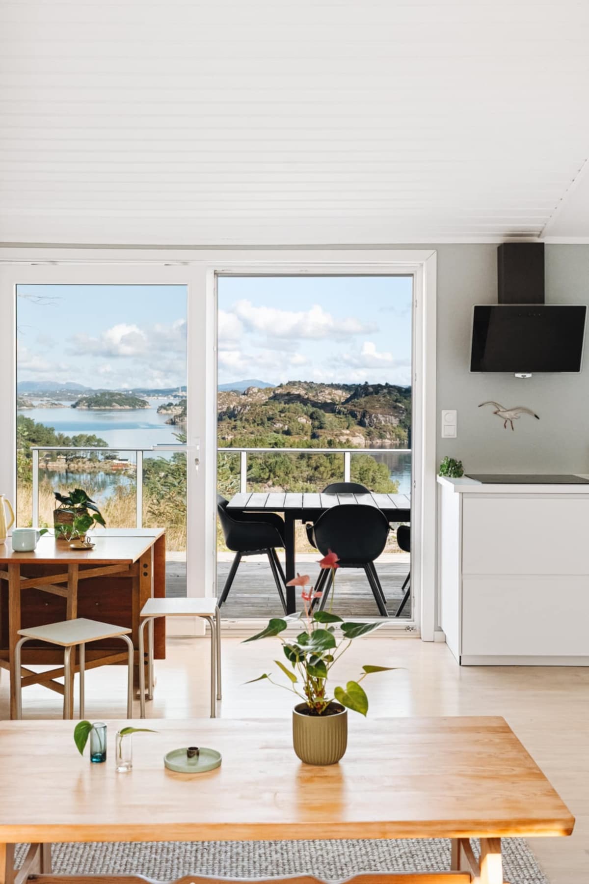 Eksklusivt feriehus på idylliske Ebbesvikneset! Nyt panoramautsikt over sjøen fra store vinduer og romslig terrasse med gassgrill. Moderne, fullt utstyrt med 4 soverom, gasspeis, romaskin, vaskemaskin, tørketrommel og sentralstøvsuger. Barnevennlig område med flotte tur-, bade- og fiskemuligheter. Enkel adkomst, rikelig parkering og kort vei til butikker. Perfekt for en avslappende og aktiv ferie!