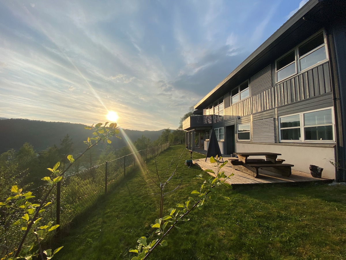 Huset er plassert mellom flyplassen og sentrum. Det inneholder to soverom, bad, stue/kjøkken og en hytte i hagen, med soverom. Fra huset er det utsikt over dalen. - Rolig blindgate - 750 meter fra nærmeste holdeplass til bybanen (som går mellom flyplassen og sentrum) - Parkering med plass til flere biler - Mulighet for lading av EL-bil - Kodelås på døren - 200m til buss - Flere dagligvarebutikker i nærområdet - Fullt utstyrt kjøkken - Sengetøy og håndklær inkludert
