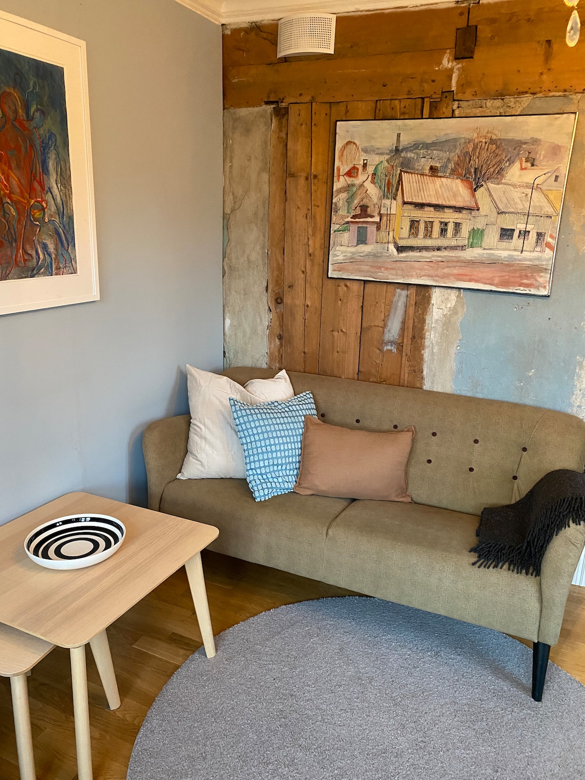 Welcome to the historic Bergen house, dating back to around 1780, located in the charming Sandviken area just a stone's throw from the bustling city center among local residents. You'll have the entire house to yourself, complete with a cozy outdoor terrace. The property is secluded from street noise, tucked away in a small alley. Its convenient location offers easy access to supermarkets, a bus stop, hiking trails, and city bike parking. Additionally, you can find paid street parking nearby.