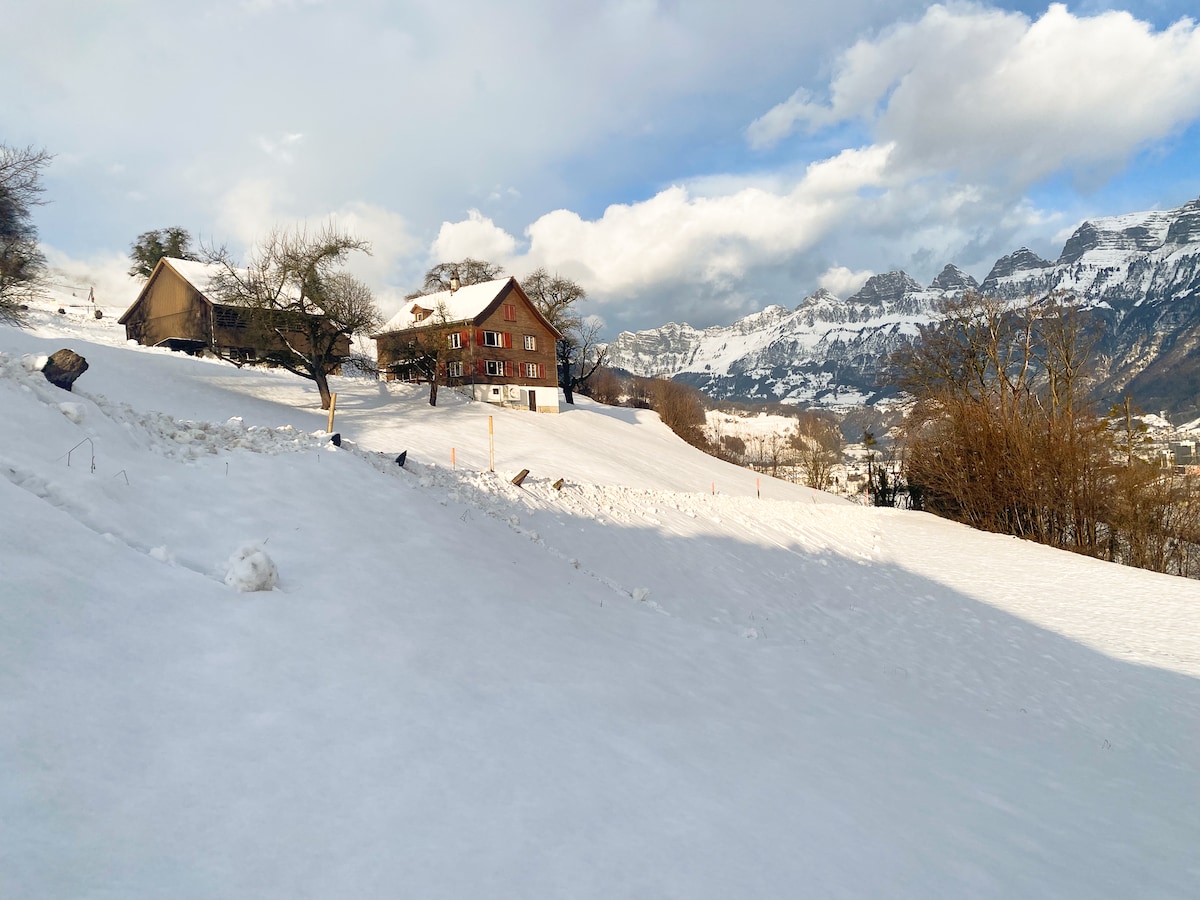 Finden Sie Ihre Ruhe und machen Sie einen Reset in den Glarner Alpen. Privates, kleines, gemütliches Studio mit Private Sauna und Hot Tub zur Entspannung (optional buchbar). Perfekt für Paare oder Alleinreisende. Kostenloses WLAN, Netflix, Nespresso-Kaffeemaschine und zwei City E-Bikes inklusive. Nur 5 Minuten zum Naturjuwel Äugsten und 15 Minuten zum Klöntalersee. Parkplatz direkt vor dem Studio.