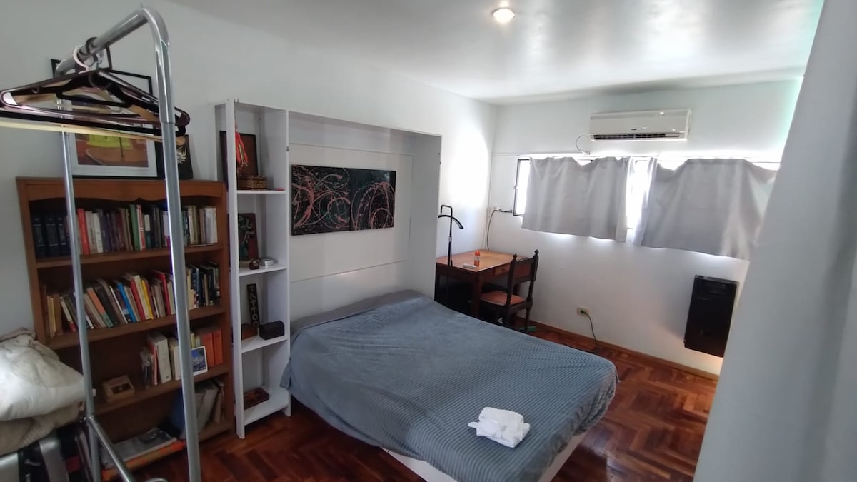 Ubicado en una de las mejores zonas de la ciudad, este departamento tiene un estilo antiguo, con pisos de madera de pinotea y una pequeña galería que invita a relajarse. Buena circulación, ambientes amplios con verde y un aire antiguo-moderno. Brinda diseño y confort, así como equipamiento y conectividad (Aire acondicionado, TV 4K y WIFI), con detalles en cada ambiente que lo hacen un pequeño hogar calmo y confortable. Ideal para parejas o familias pequeñas. Se pueden alojar máximo 4 personas.