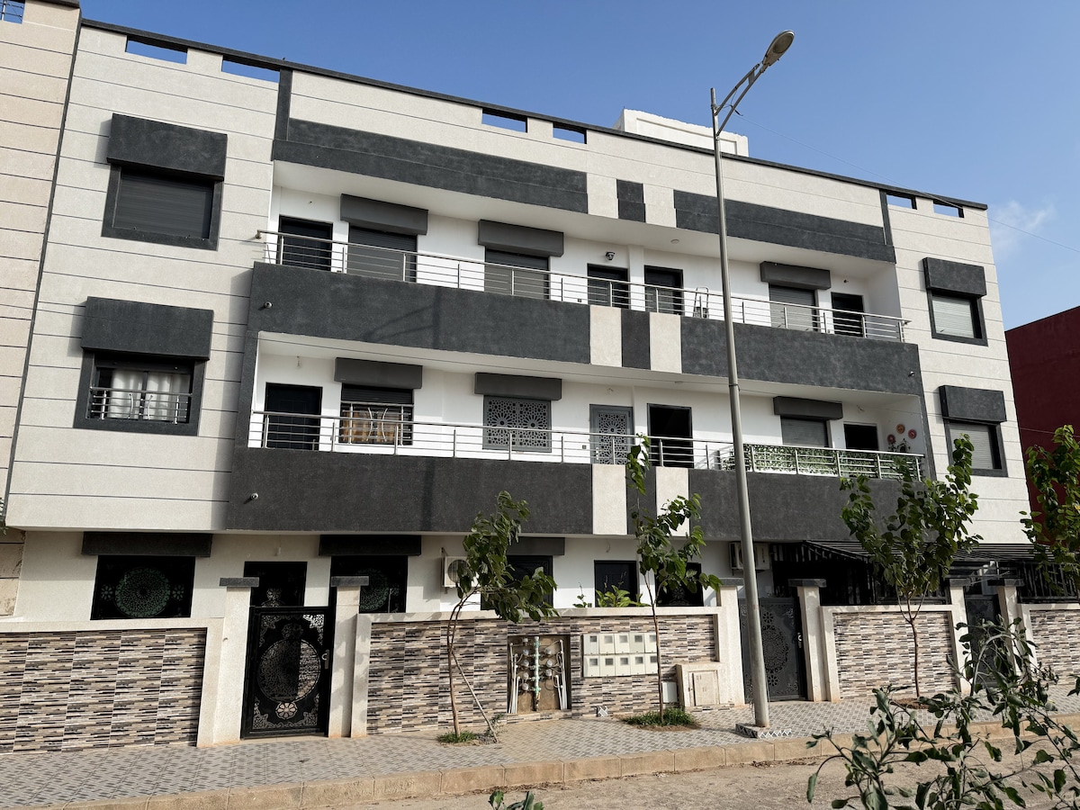 Magnifique appartement haut standing idéal pour couples ou petites familles, situé à seulement 5 minutes de la plage et à proximité immédiate de Marjane et de toutes les commodités.cet appartement luxueux se trouve dans une résidence sécurisée 24h/24h avec deux piscines accessibles,une pour adultes et une pour enfants, ainsi qu’un espace vert et un parking gratuit. Chambre spacieuse, canapé très confortable, cuisine très bien équipé, une belle terrasse. Climatisation dans toutes les pièces.