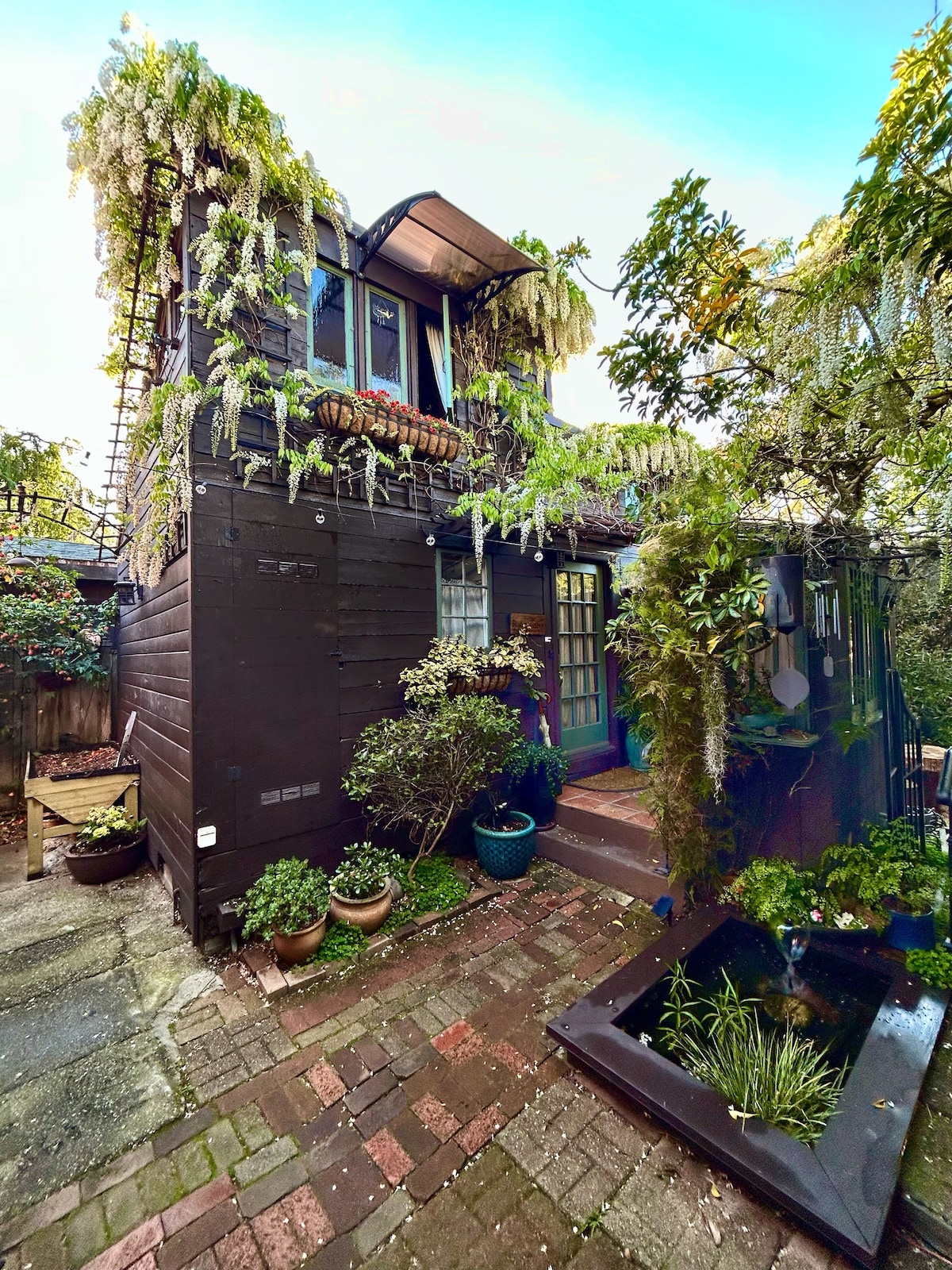 Enjoy comfort & tranquility in the heart of one of Berkeley's favorite neighborhoods! Just steps to cafes & markets, all you need is only a block away - BART a 10 min walk, buslines even closer go to UC and all around town! Truly the best North Berkeley has to offer; Private garden, Sauna, Outdoor Shower & sleeping for up to 4 with a Queen bed in the loft & an extra comfy Queen pullout bed in the den. *Stairs may not be suitable for those with limited mobility, small children or pets.