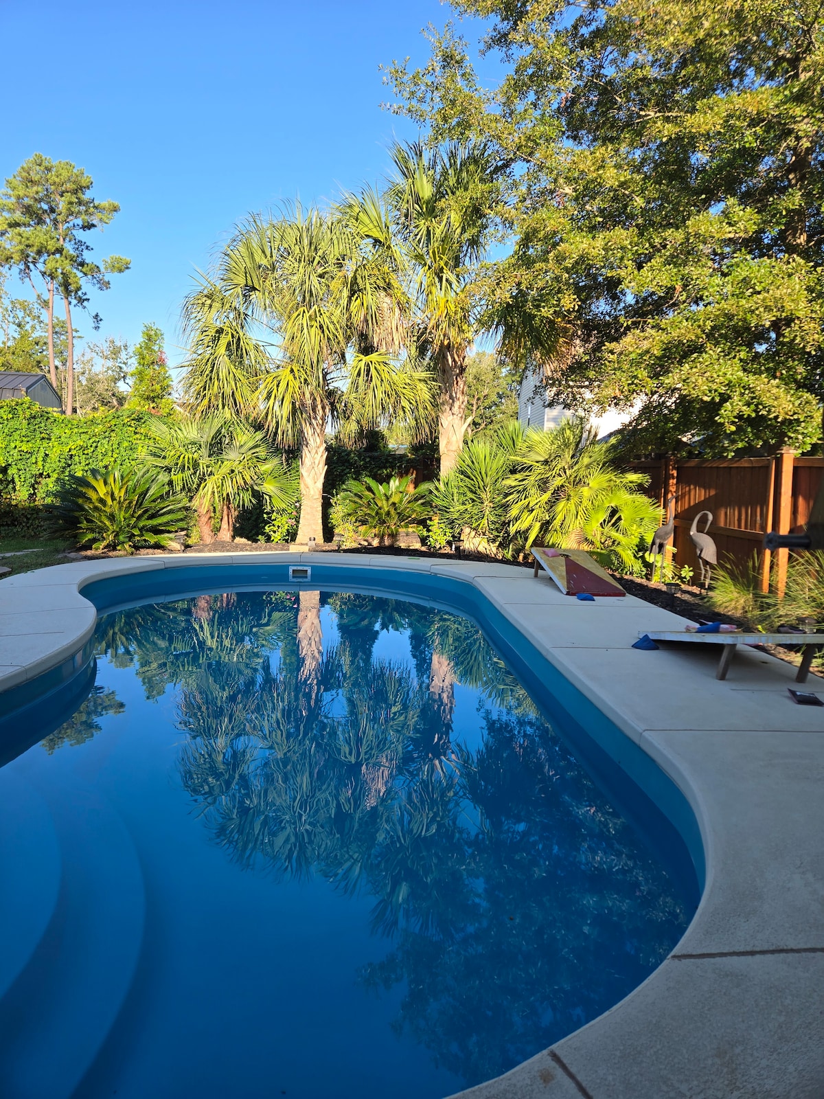 Relax and unwind in this beautiful private guesthouse, perfectly located just minutes from shopping, dining, entertainment, and the beach. Upon arrival, enjoy chilled bottled water waiting just for you. As evening falls, take a peaceful stroll along the nearby nature trail and catch a stunning sunset from the neighborhood dock. When you return, settle in for the night with your favorite movies on the 70” smart TV—no shared armrest required. Come stay, relax, and make this getaway all about you.