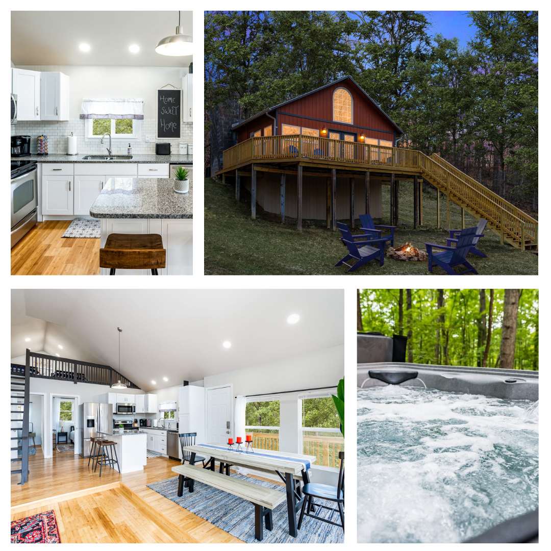 Experience the epitome of luxury in our breathtaking A-frame cabin, nestled amidst the serene woods. This modern retreat offers lavish amenities and a stunning open living space with floor-to-ceiling windows, immersing you in nature's beauty. Indulge in the private hot tub, relax by the fire pit, and unleash your culinary skills in our fully equipped kitchen. The large screened porch provides a tranquil oasis, while nearby hiking trails, golf courses, and a spa offer an unforgettable getaway!