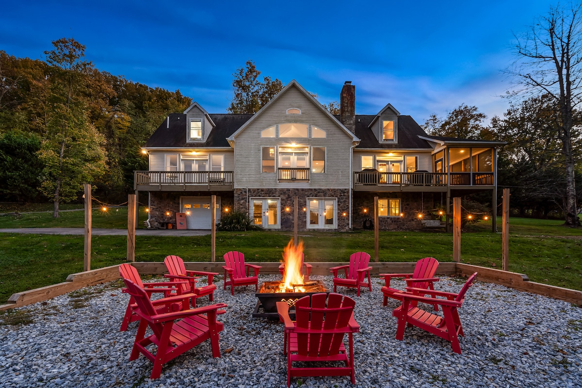 ★★★★★"The home is absolutely stunning and has everything and more to make incredible memories with friends and family!" - Sonnie from PA Family-Friendly Forest Getaway | 4BR, Hot Tub, Game Room, Fireplace | 40 Acres + Pond and Creek Near Berkeley Springs, WV Welcome to Creek Hollow—a newly built 4-bedroom home on 40 acres of peaceful woodland just 15 minutes from downtown Berkeley Springs. Designed for memory-making, this secluded escape blends outdoor adventure, cozy comfort, and endless fun.