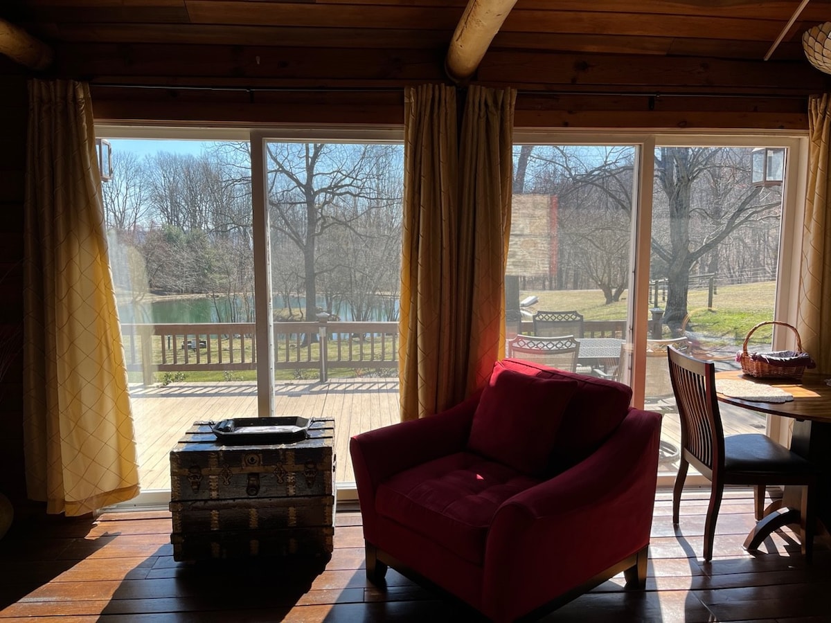 The cabin is the original Settler's Cabin on the Gruber Homestead settled in 1737 by Henrich Gruber. The restoration combines the originality of the cabin with the modern amenities that make this a unique and comfortable getaway experience. Located on a rural property of 28 acres in Berks County, PA. Miniature donkeys and horses graze the pastures and add to the charm of the cabin. No pets allowed.