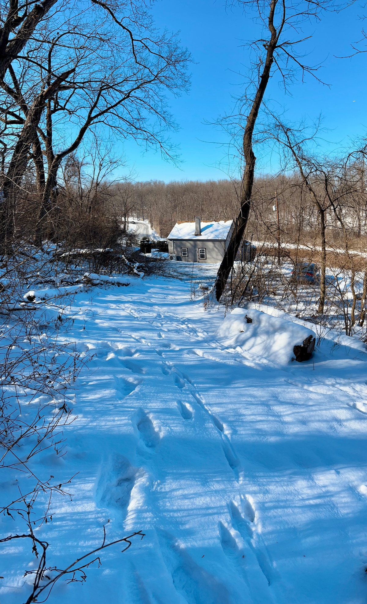 Take it easy at this unique and tranquil getaway. Need a nature reset regardless of the season? Enjoy a stay at a completely refurbished 1820’s log cabin nestled in the woods and rolling fields of a 30 acre homestead. The cabin showcases three bedrooms and gorgeous views, a large living and dining area, as well as full kitchen. Enjoy exploring the trails around the farm, greeting the resident horses and ponies, immersing yourself in the surrounding area of hiking trails and blue marsh lake.