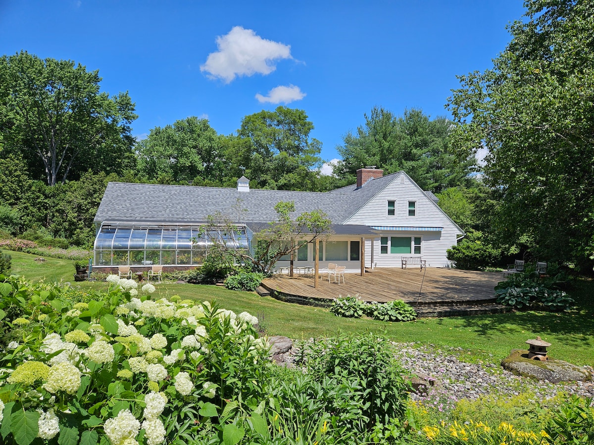 Berkshires charm in this fully renovated 1800's post and beam farmhouse set on 5 park-like acres. Features open plan living/dining/kitchen with gas cooktop and gas 3 sided fireplace, lovely sun room, master suite downstairs and 2 br, bath and sitting area upstairs. Spacious deck overlooking the expansive property Conveniently located between the charming towns of Stockbridge, Lenox & Great Barrington. We are surrounded by 4 ski areas, the closest is 10 minutes away! Many dining options too.
