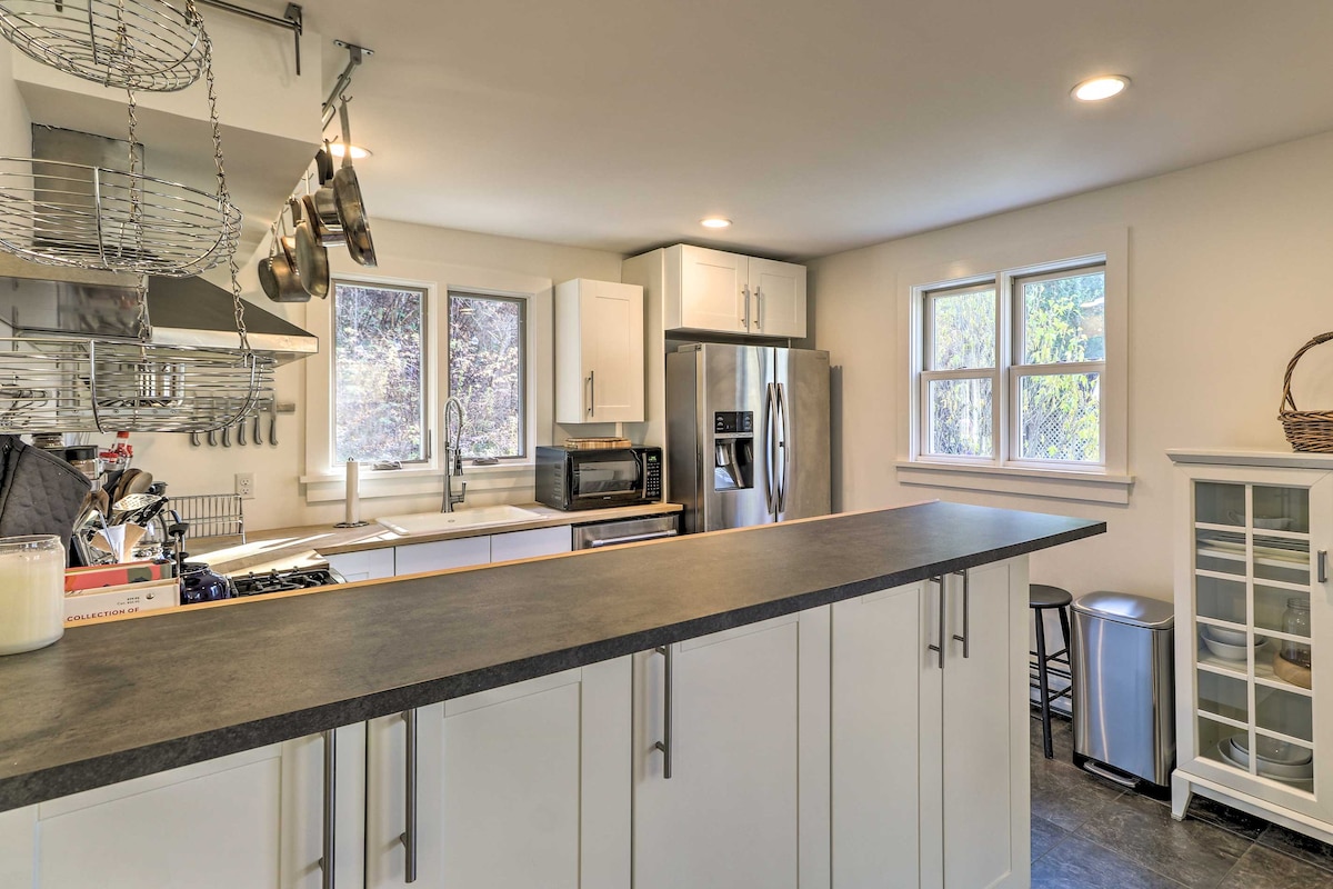 Explore the best of the Berkshires, then retire to this charming 4-bed, 2-bath New Marlborough home to lounge, grill, dine, and lay your heads. The Konkapot River runs next to this vacation rental, which abuts protected land and a nature preserve. Within 5 miles of the home, you can access the Gedney Farm wedding venue, warm-weather attractions like Lake Garfield Beach and the Appalachian Trail at Beartown State Forest, winter hotspots like Butternut Ski Area, and renowned farm-to-table dining.