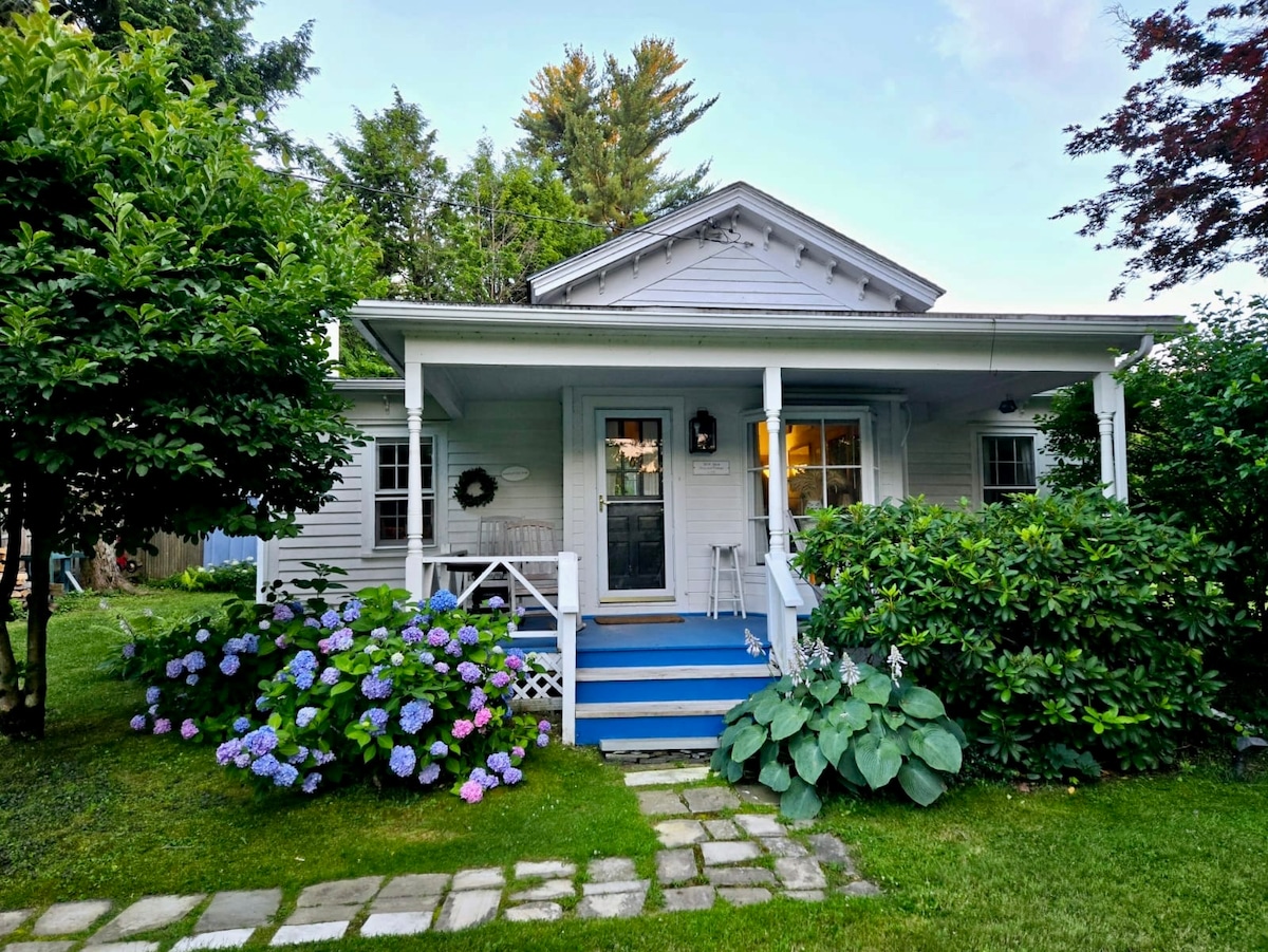 The Writer's Cottage is a tiny white house on a country road; vintage, complete, and inspiring. Built in the nineteenth century, it's perfect for a solo traveler or a pair of travelers exploring the Berkshires and the Hudson Valley. If you like rustic buildings, you'll be a fan of the cottage; it's an incredibly cozy time warp. Queen bed and living quarters downstairs; airy loft up a narrow set of enclosed stairs. There's an orchard and lawn with grill, hammock and ironwork table.