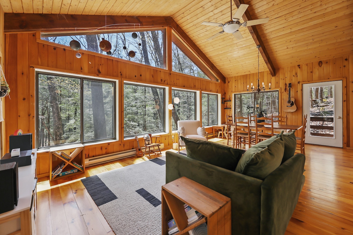 Private Berkshires 20Acre estate designed by acclaimed architect and author Norton Juster. An exclusive 4 bedroom retreat, with mountain views from every room, cathedral ceilings, cozy fireplaces, elegant living spaces, and outdoor fire pit, it’s the perfect place to unwind. Relax in the hot tub or sauna after a day of skiing at Jiminy Peak or Bousquet. Newly renovated with high end furnishings and chef's kitchen. A perfect mix of adventure and tranquility awaits—book your mountain escape today!
