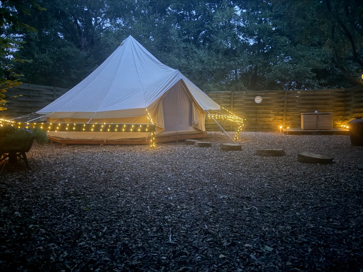 Enjoy the lovely setting of this romantic spot in nature. Set under a canopy of trees, with a field behind, this stylish bell tent offers a unique stay in the Oxfordshire countryside. *This is a new listing (July 2025). Please see our other listing "Cotswolds Bell Tent 1’ to read all our great 5 star reviews* Yurt 2 now has power and lighting. please note, for winter stays we have 15 - 25 tog duvet options.