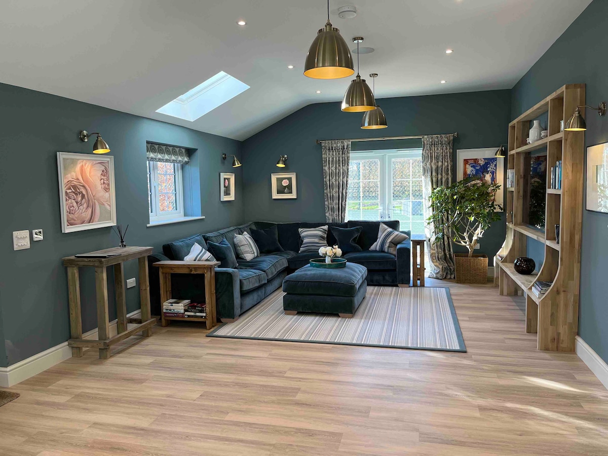 Luxury self-contained annexe on the edge of the Chilterns, situated in the peaceful countryside which can be enjoyed from the hot tub, yet only 5 mins to the M40, 15 mins to Oxford Park & Ride & 15 mins to the station with trains to London taking 45 mins. It is the perfect place to relax with cosy lounge, wood burning stove, bespoke kitchen & underfloor heating. Upstairs features a super-king sized bed, seating area, luxury wet-room with underfloor heating, balcony and Jacuzzi.