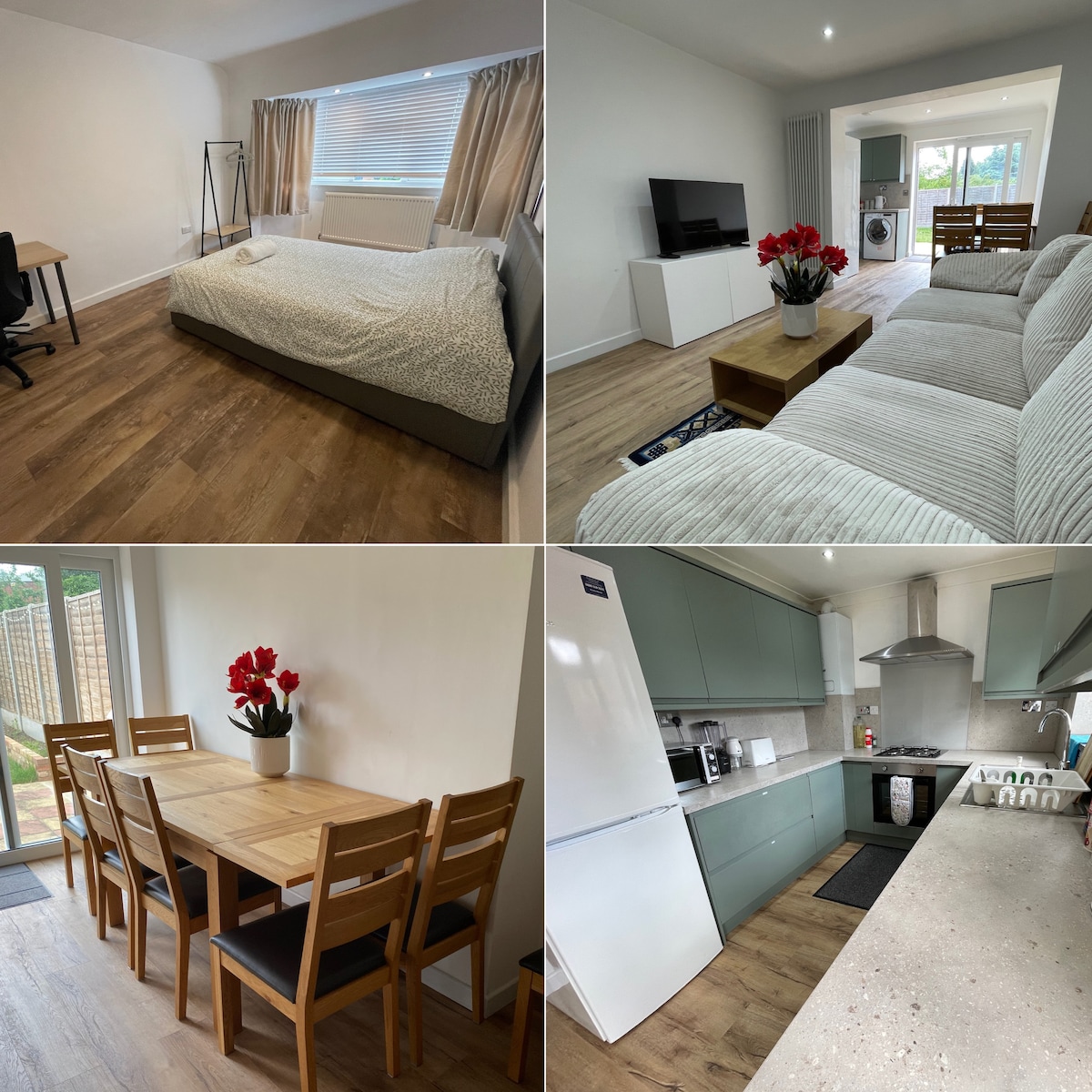 A lovely indendant apartment at the bottom of our garden secluded by trees . the apartment has a nice outside area with patio table and chairs . Inside there is a large open plan kitchen , dinner, lounge with a sofa bed and a well equipped kitchen with double oven , fridge freezer , dishwhaser , whashing machine microwave , toaster, kettle and much more . theres a large smart tv and wifi , dinning table . bedroom with king size bed and built-in wardrobe . bathroom with walk-in shower .