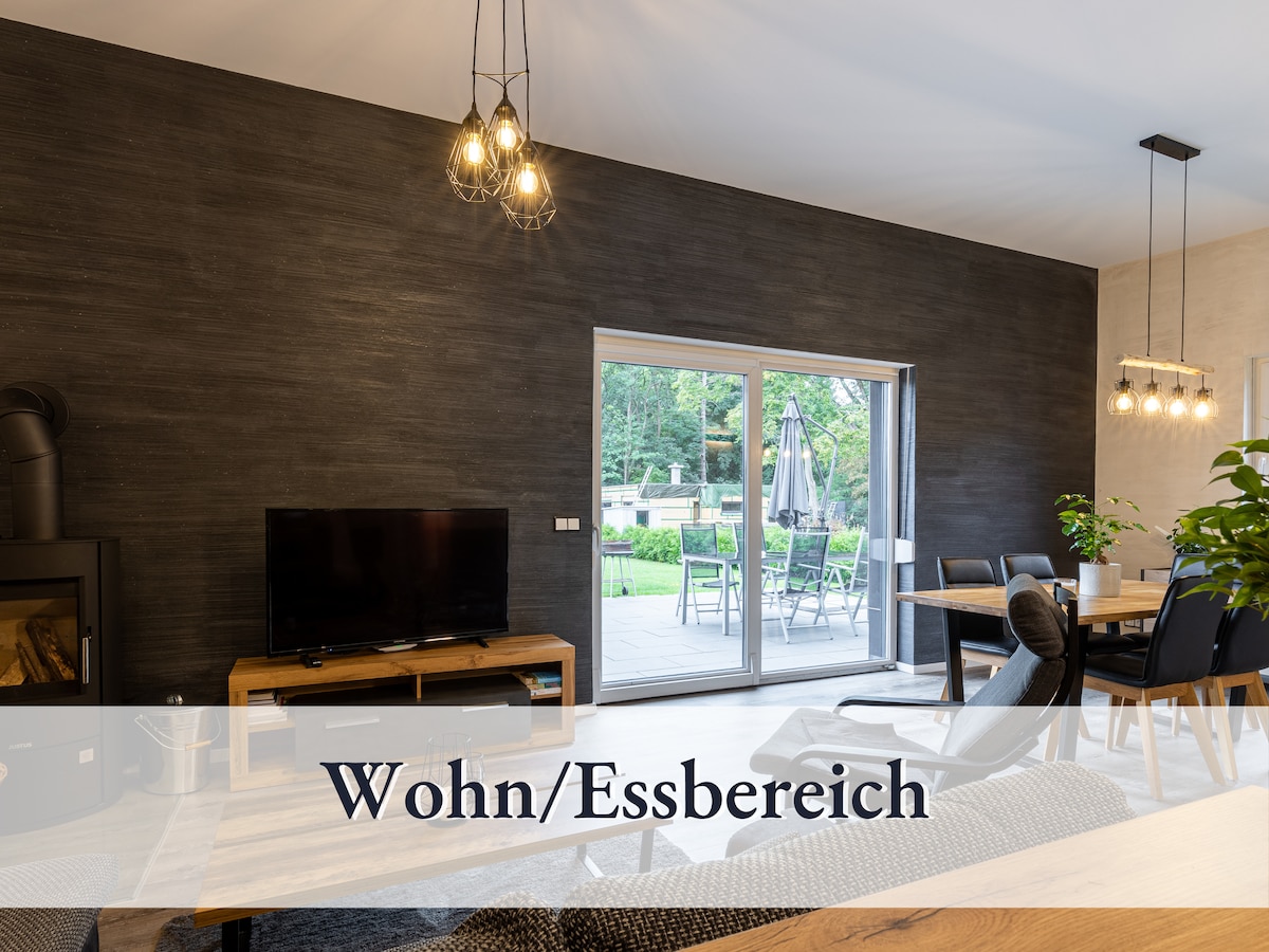 Are you looking for a stylish accommodation, for up to 5 guests, for your a relaxing holiday in the nature at Scharmützel lake? Then we welcome you in our apartment in Wendisch Rietz, only 70km from the centre of Berlin. Our recently built apartment with its two bedrooms, spacious bathroom, kitchen and living area, terrace with heated hot tub, sauna and view of the surrounding nature, invites you to relax.