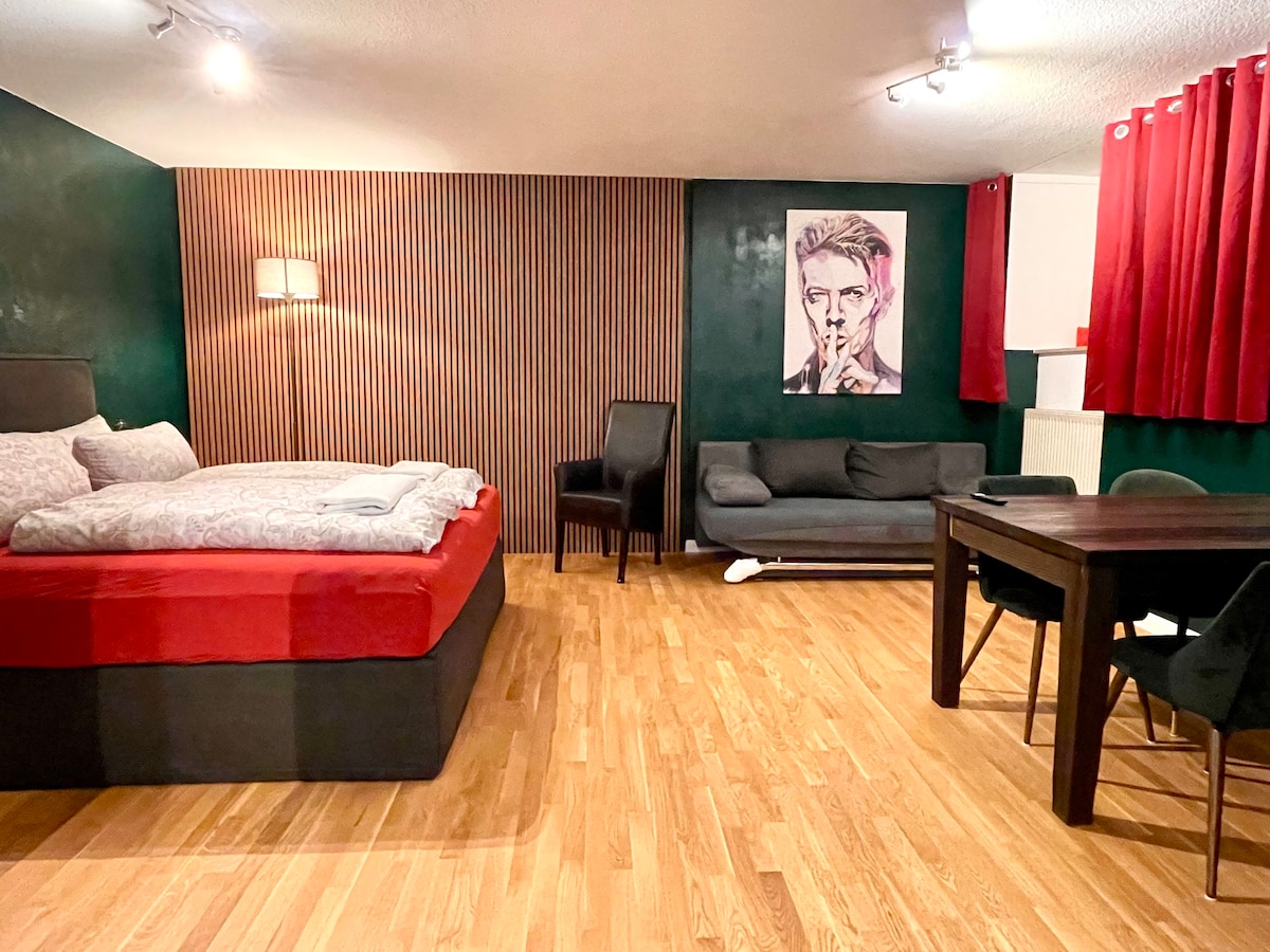 This stunning minimalist-inspired home adds its own artistic flair to the decor by placing bold and exciting art pieces throughout every room. With hardwood floors and black and white fixtures, each space has an elegant charm and character. Impressum Aglaja Schott Gütlingstr. 18b 14167 Berlin Our space is truly unique because it offers our guests to experience art while living in Berlin's popular district Mitte. The gallery and apartment is owned by an artist, who designed the space to show his work. Guests will have access to the whole gallery, but for rent is only the private apartment adherent to the gallery, including a small kitchen, a combined living sleeping area with a loft style bathtub and attached separate bathroom with shower. The other sleeping area can be separated by movable walls and has an extra bathroom with shower and toilet as well. Guests also have access to the back yard until 10 pm. Our aim is, to welcome all our guests personally and show them around and help them getting started in Berlin. Since we are also living in Berlin we are happy to help if any difficulties occur during the stay. It's Mitte, means closed to all cultural attractions, shopping and nightlife, but still quiet and you don't feel like living in a "bar". I like to call it the "new quiet Mitte" since recently a lot of luxury apartment buildings were constructed next to existing architecture, so it's for Mitte a pretty quiet neighbourhood, but Gendarmenmarkt, Checkpoint Charlie, Alexanderplatz, Friedrichstraße are all within easy walking distance (10min) Subway station (U-Bhf) Spittelmarkt 2 min walk. Several busses 3 min walk at Leipziger Str. Walking distance to Gendarmenmarkt, Checkpoint Charlie, Alexanderplatz and Friedrichstraße about 10 min. You can only access your apartment through the gallery, which may be gently used by the artist. Your apartment is private and will during your stay not be accessed by us. Guests will have access to the whole gallery and fully equipped kitchen, but for rent is only the private apartment adherent to the galery, including a combined living sleeping area and a loft style bathtub and separate bathroom with shower and toilet. Guests also have access to the back yard until 10 pm. Guests will rent a total of about 75sqm, including a combined living sleeping area including a loft style bathtub, separate bathroom with shower and toilet, plus another sleeping area with an extra attached bathroom. Guests also have access to the back yard until 10 pm. Guests will rent a total of about 75sqm, including a combined living sleeping area with a loft style bathtub and separate bathroom with shower, plus another sleeping area with an extra attached bathroom with shower and toilet. Guests also have access to the back yard until 10 pm. Mitte neighborhood is within walking distance to many of the city's iconic locations such as Checkpoint Charlie with superb shopping, dining, and nightlife nearby as well. There is easy access to public transport making exploring easy and convenient.