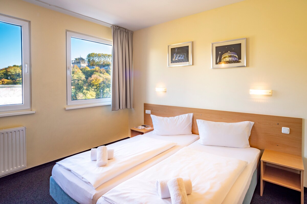 ca. 18m² | Bett (140cm/160cm*210cm) | Klimaanlage | Flachbildfernseher | Schreibtisch | Kühlschrank | Safe | Bad mit Dusche/WC und Haartrockner | gratis WLAN Parkplatz: Vorab reservieren für 22,00€/Tag Frühstücksbuffet: 21,00€/Person | Mo.-Fr. von 06:30-10:30 Uhr | WE und Feiertage 07:00 -11:00 Uhr