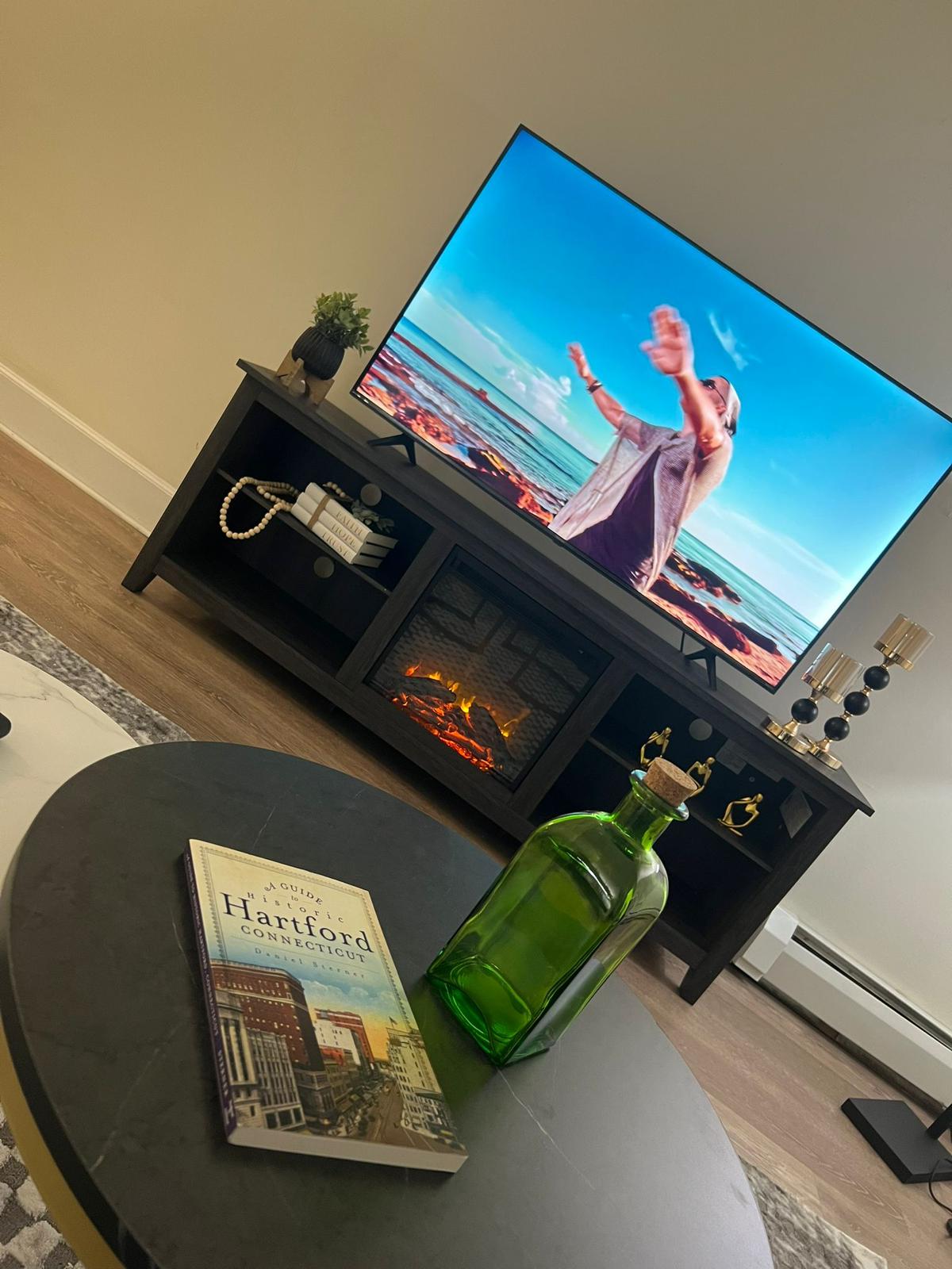 Welcome to our cozy penthouse-style apartment, where comfort meets tranquility. Enjoy a private deck with exceptional views of West Hartford. Treat yourself with our minibar and indulge without leaving your unit. Centrally located, our apartment provides easy access to the best of West Hartford. Explore Blue Back Square, a vibrant dining hub just 5 minutes away. For a leisurely experience, walk 2 minutes to Park Rd and discover culinary delights like Plan B, Americano Bar, and Zaytoon’s Bistro.