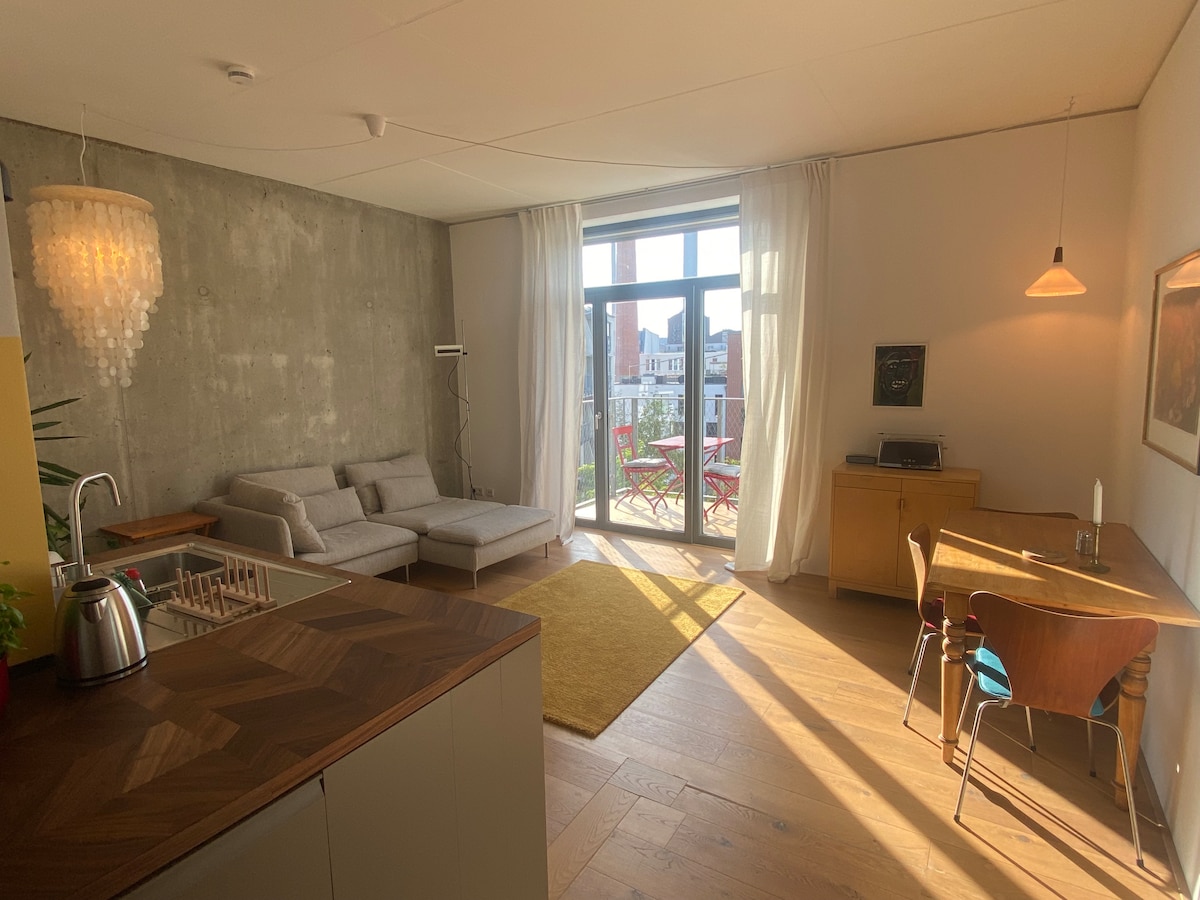 Modern, spacious two-room apartment, located in the heart of Berlin, right on the banks of the Spree. Newly and comfortably furnished with a bathroom with walk-in shower, a fitted kitchen, a washing machine, a dishwasher, and oak parquet flooring. With a balcony and a TV. It is located in a new passive house community complex. Enjoy a direct view of the river and sunsets. Please note that check-in and check-out times are binding. Changes can only be agreed upon in advance in exceptional cases.