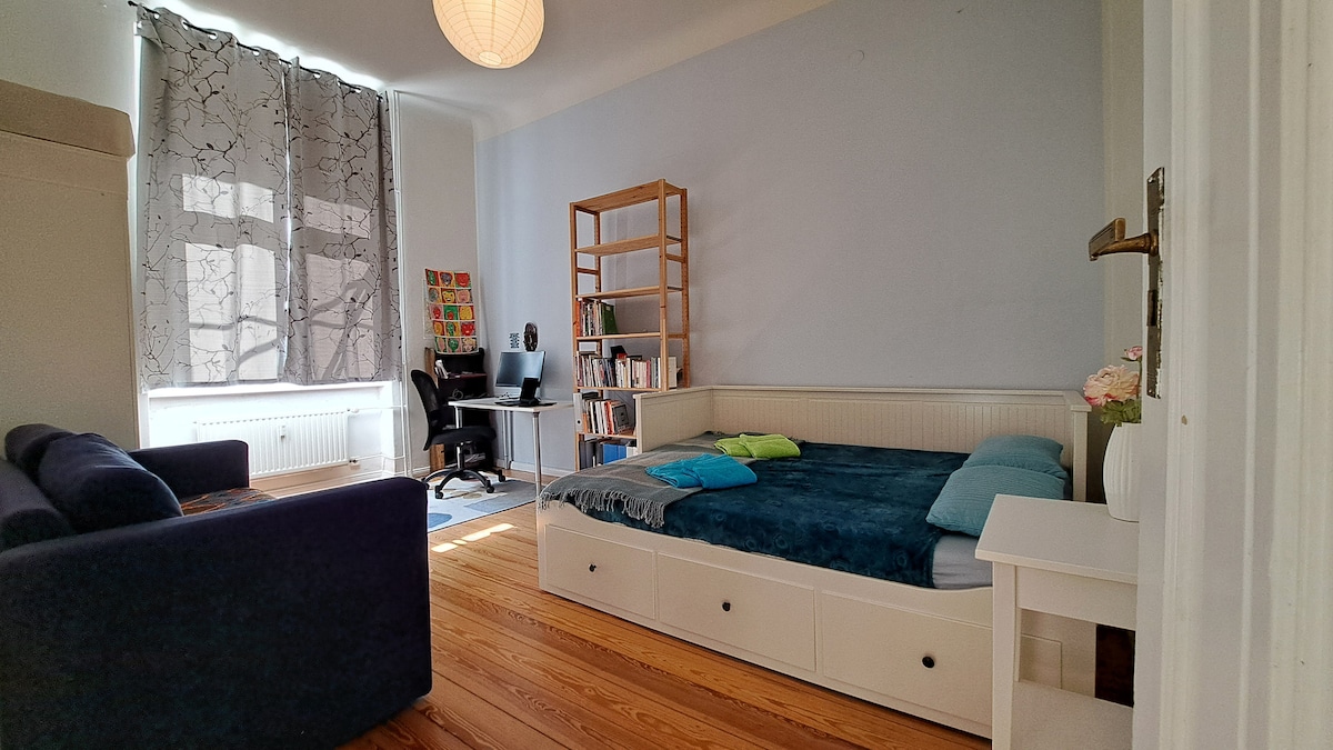 A quiet and harmonious little haven located in the hip Helmholtz kiez in Prenzlauerberg. With two balconies, high ceilings and original wooden flooring, modern kitchen, tasteful decor and all the modern conveniences you could need, it's a perfect little oasis and contrast to the buzz of ample restaurants, cafes and markets it's surrounded by. Alexanderplatz and Hauptbahnhof are a short tram ride away. Kollwitzkiez, Mauerpark (and markets) are within walking distance.