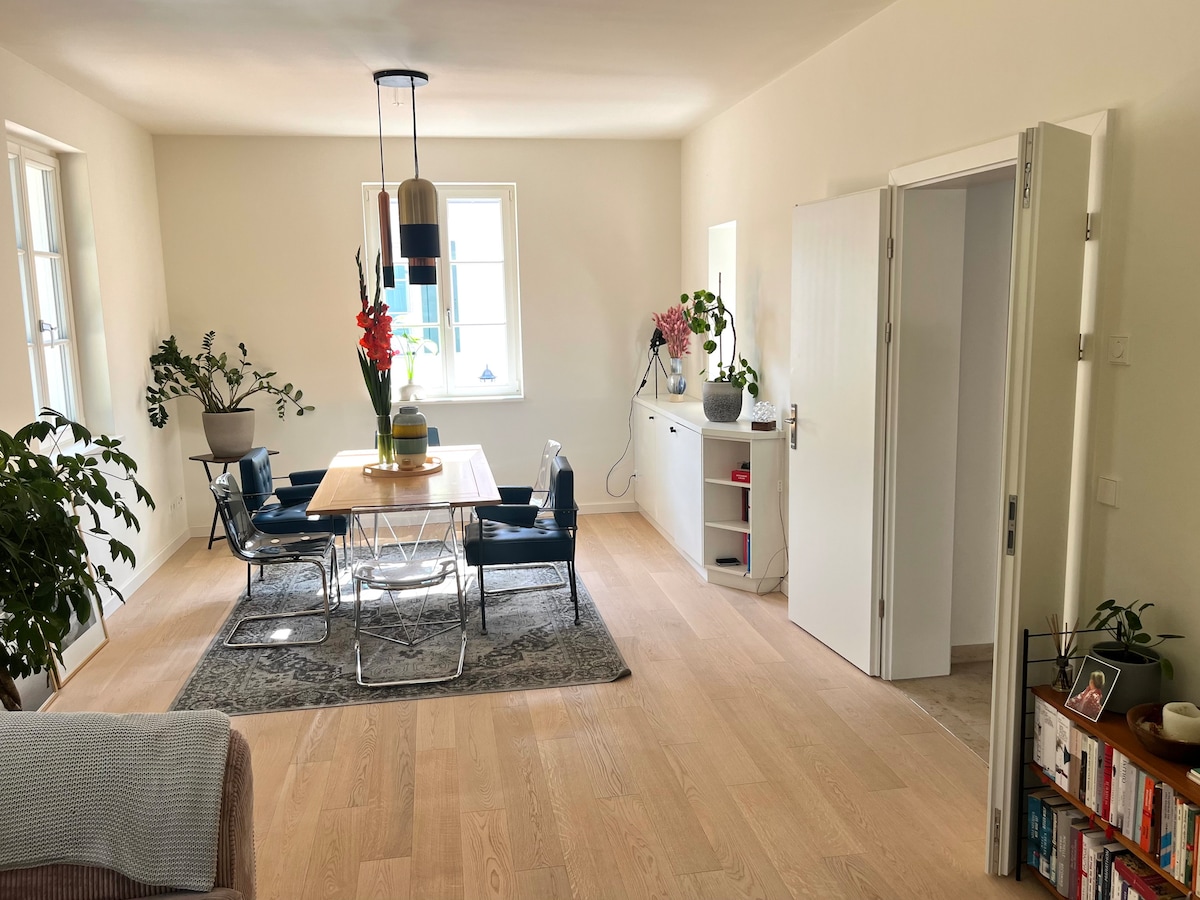 Our light rooftop apartment with its 150 year old wooden beams lies in the middle of a lovely neighbourhood. It comes with a small but stylish kitchen and a luxurious bathroom, equipped with a rain shower and a Finnish sauna. we offer Netflix, cable TV and very fast Internet. Your stay with us will be carbon neutral, since we fully compensate our emissions. The apartment hosts up to three adults or two adults with children.