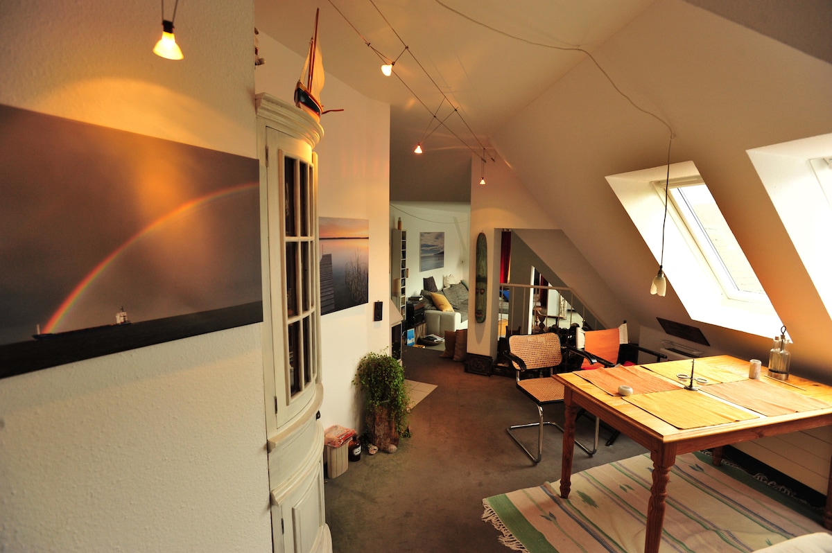 This officially legal, elegant penthouse offers a stunning view over the roof-tops of Berlin! The peaceful neighborhood is 3 minutes from the underground station at KaDeWe, Europe's largest department store. Restaurants, bars and cool shops around, making it the perfect spot to shop or to indulge in Berlin's vibrant nightlife. The well-appointed flat offers an oases of tranquility; hang out and cook dinner and enjoy or lounge in front of the fireplace with a glass of delicious wine