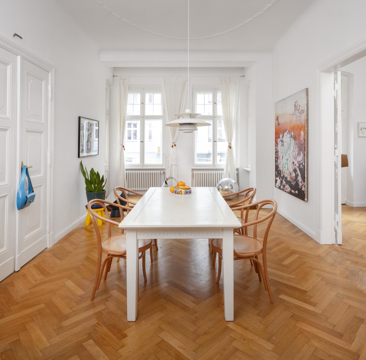 My house is near the S-Bahn Greifswalderstr. Only 10 min. Alexanderplatz. You'll love my accommodation for the exclusive device, cozy, 3 comfortable double beds. My accommodation is good for lady’s weekend, business travelers and families (with children). The Deluxe Apartment believes in classic old building style. With 4-meter high ceilings, high-quality stucco, stylish chandeliers and a unique mural. With a total size of 130 square meters.
