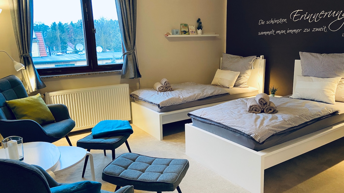 Das freistehende neu renovierte Ferienhaus (ca.75qm) mit eigenen Garten und 2 Terrassen befindet sich nur 10Km von Berlin und Potsdam entfernt. Mit dem Auto ist die Autobahn in wenigen Minuten erreichbar und ein perfekter Ausgangspunkt für Unternehmungen rund um Berlin und Potsdam. Genießen Sie im Ferienhaus die Ruhe und das Grün der Umgebung. Gastronomie und Sehenswürdigkeiten von Stahnsdorf fußläufig zu erreichen. Bestens geeignet für Familien, Geschäftsreisende, Paare und Langzeitaufenthalte.