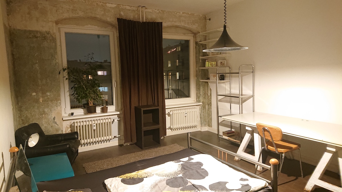A spacious 1-bedroom apartment in the heart of Friedrichshain. The place is very cosy to stay at, it's ideally located 100m away from Boxhagener Platz in an adjacent street, so you could experience the lively atmosphere of one of the best spots in Berlin and at the same time have it quite and peaceful at night, the bedroom windows are facing the backyard. The area is full of life and is filled with plenty of cafés, restaurants, little shops, bars, parks and clubs.