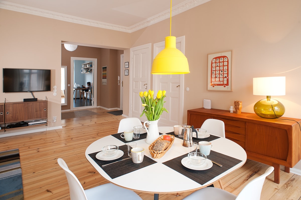 Hier könnt Ihr Euch wie zu Hause fühlen. Unser Apartment befindet sich im attraktiven Bezirk Prenzlauer Berg im Ostteil der Stadt am Helmholtzplatz, welcher durch die schönen Cafes, Restaurants und individuellen Shops ein beliebter Treffpunkt für Studenten, Künstler und junge Familien ist. Die helle und grosse 2-Zimmer-Altbauwohnung mit modernem Duschbad und voll ausgestatteter Küche ist stilvoll eingerichtet mit viel Liebe zum Detail.