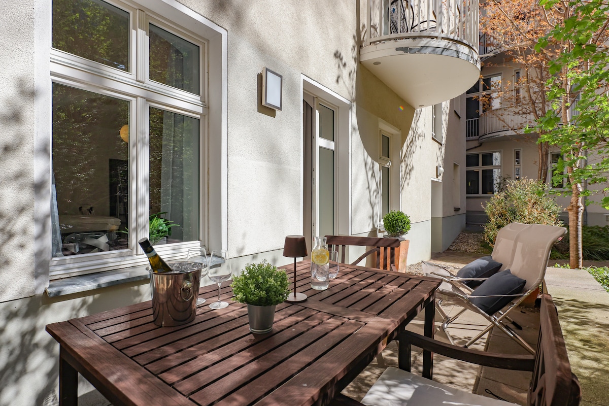 Welcome to this spacious and elegant private suite in the historic heart of Berlin, just a short walk from the city’s most important landmarks, excellent restaurants, and vibrant shopping areas. Enjoy complete privacy, peaceful garden views, quiet sleep, and refined modern comfort. Floor to ceiling windows fill the space with natural light, while a luxurious king size bedroom, a high-end kitchen, and a sleek bathroom with a rain shower and bathtub create a calm retreat in the middle of the city.