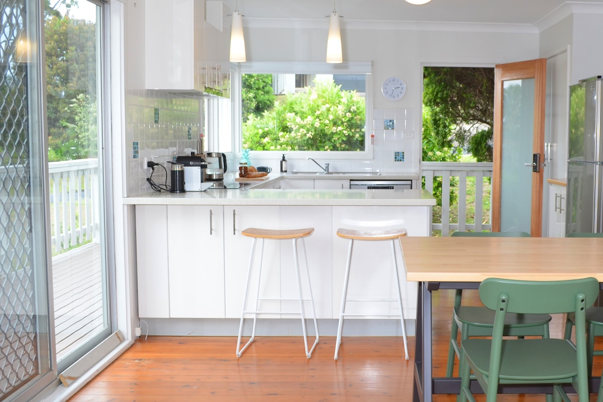 Absolute beach front, Ivy Blue is perfect for 2 families. The house offers 2 self contained areas with a kitchen, bathroom, dining and living area on each floor, joined by an internal staircase. The estuary & beach offer the perfect location for SUPs, fishing and kayaking (2 kayaks provided). There's also plenty of room for boat parking. With the IGA in easy walking distance, there's nothing more to do but sit back & enjoy the spectacular ocean views from the top or bottom deck.