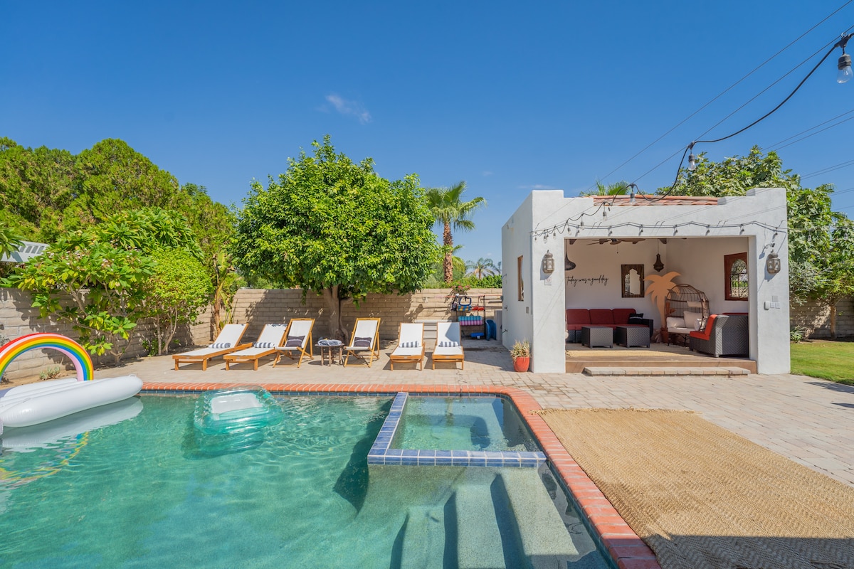 Your family and friends will be close to everything when you stay at Casa de Oro. Near Coachella and stagecoach festivals. 35 min away from Joshua tree and 20 min from DT Palm Springs . Grocery stores-Ralph 3 min drive Hiking-25 min Hockey Arena- 10 min drive Gym- 3 min drive (EŌS) Restaurants- 5-10 min drive We have our own private pool with a heated spa. We have pool, gardener, and pest maintenance that service the home weekly.