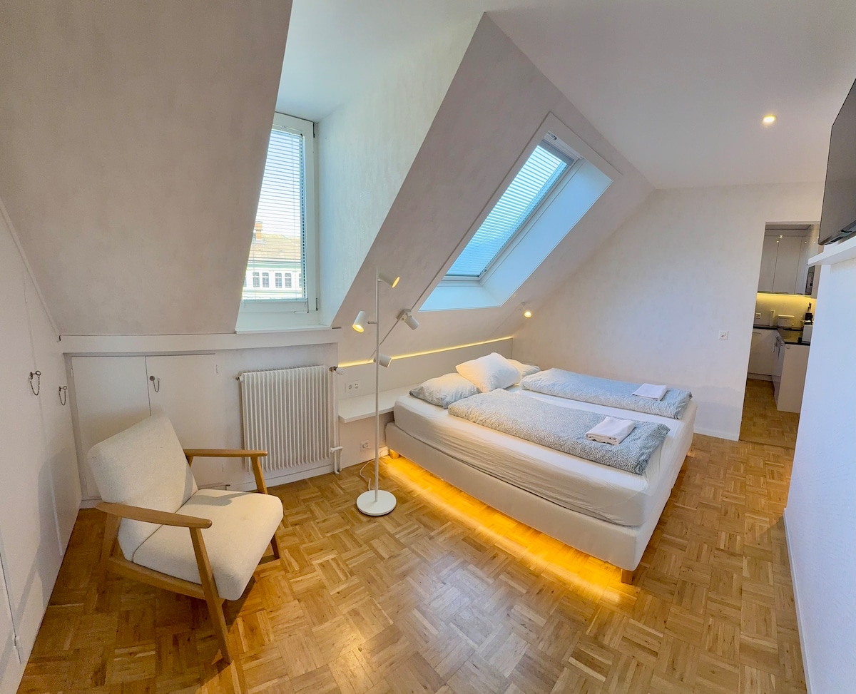 Entire, small Attic-apartment (5th floor with elevator) in studio layout for 1-3 persons in the heart of the Bernese Old Town. Private bathroom and kitchen. 3 minute walk to Bern main train station, 2 minutes to the Swiss parliament and all main sights, 1 minute to shops, restaurants and the entire Bernese nightlife.. and at the same time only 5 minutes down to the river Aare or to Bern's Botanical Garden.