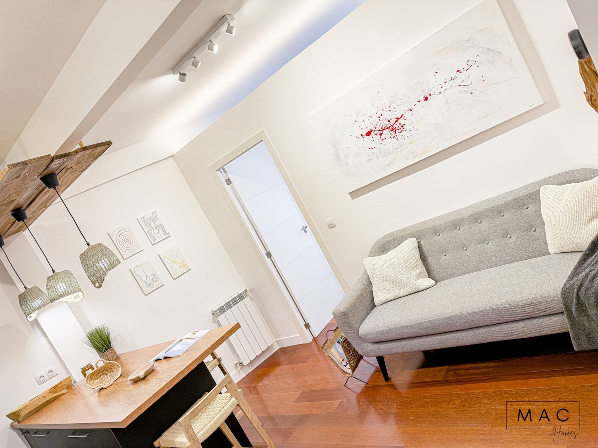 Beautiful 50m2 apartment with terrace is located in the Santiago Bernabeu área. In the heart of Chamartin neighbourhood: - 8 min walk to Santiago Bernabeu stadium. - 4 min walk to Colombia subway stop, with direct connection to airport. - 12 min. walk from Santiago Bernabeu and Cuzco subway stations, with direct connection in 10 min. to the historic center of the city and in 5 min. to Chamartin train station. For 2 guests, here you will find everything you need to have an unbeatable stay.