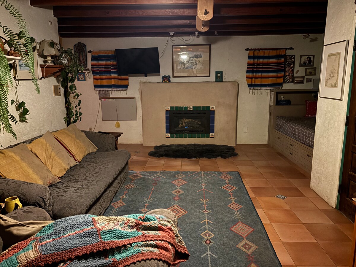 Welcome to our true New Mexican Adobe casita located in the North Valley of Albuquerque! Adjoined to our larger adobe main house, this charming little home boasts viga ceilings, a beautiful sunroof, brick floors, classic Spanish tilework, wood burning fireplace, and a stunning loft where the sunrise over the Sandia Mountains can wake you each morning. Off the beaten path and surrounded by rural land, horses, and blooming cottonwoods, our casita is an ideal place to unwind and recharge.