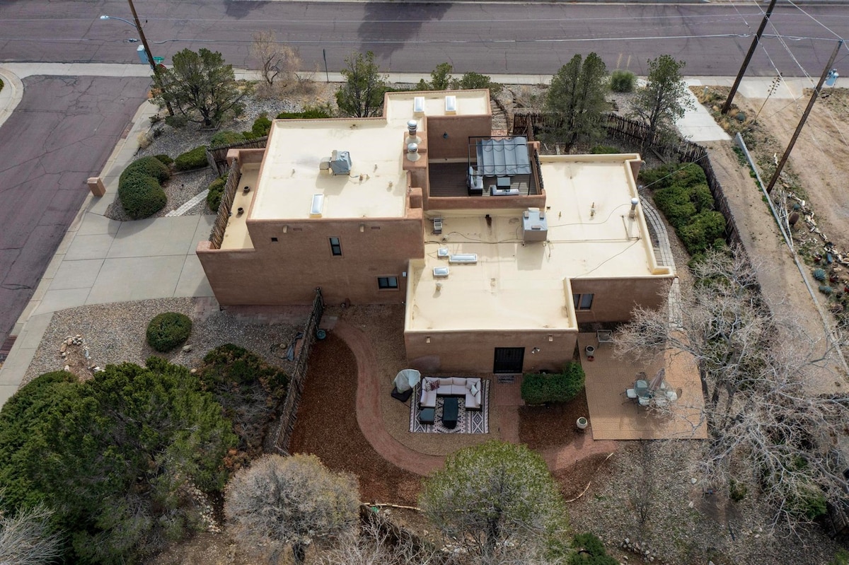Nestled against the National Forest at the base of the Sandia Mountains, this famous architectural masterpiece by Bart Prince seamlessly blends art with nature. Featured in Architectural Digest, the home boasts 6 viewing decks with breathtaking panoramic views of the mountains above and city lights below. Floor-to-ceiling windows flood the innovative spaces with light, bringing the outdoors in. Private hiking trail on property connecting to Sandia Peak.