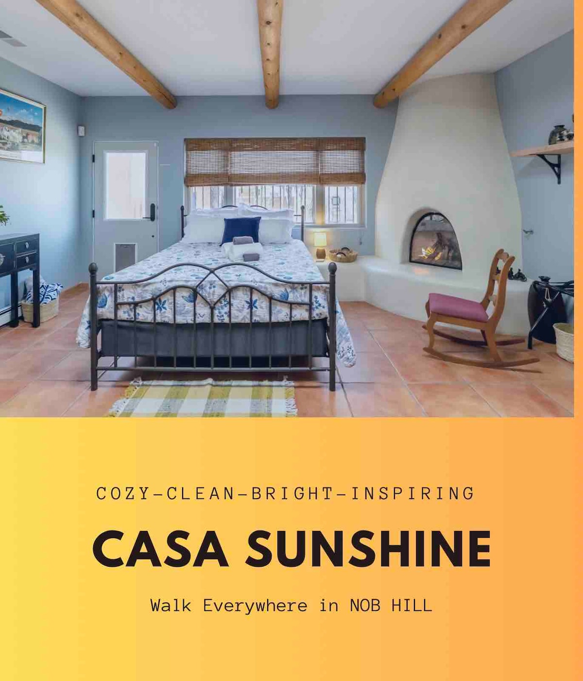 This modern southwest casita sits snuggly on our 1923 historic adobe property blending olde materials and modern amenities. Artist constructed; it brings a modern twist to your Albuquerque adventure. Casita is Spanish for little home, and this casita is entirely a home. Featuring full kitchen, King bed, a waterfall shower, private patio and pocket entryway doors that merge NM's beautiful outdoors with our cozy indoors. Permit:052140