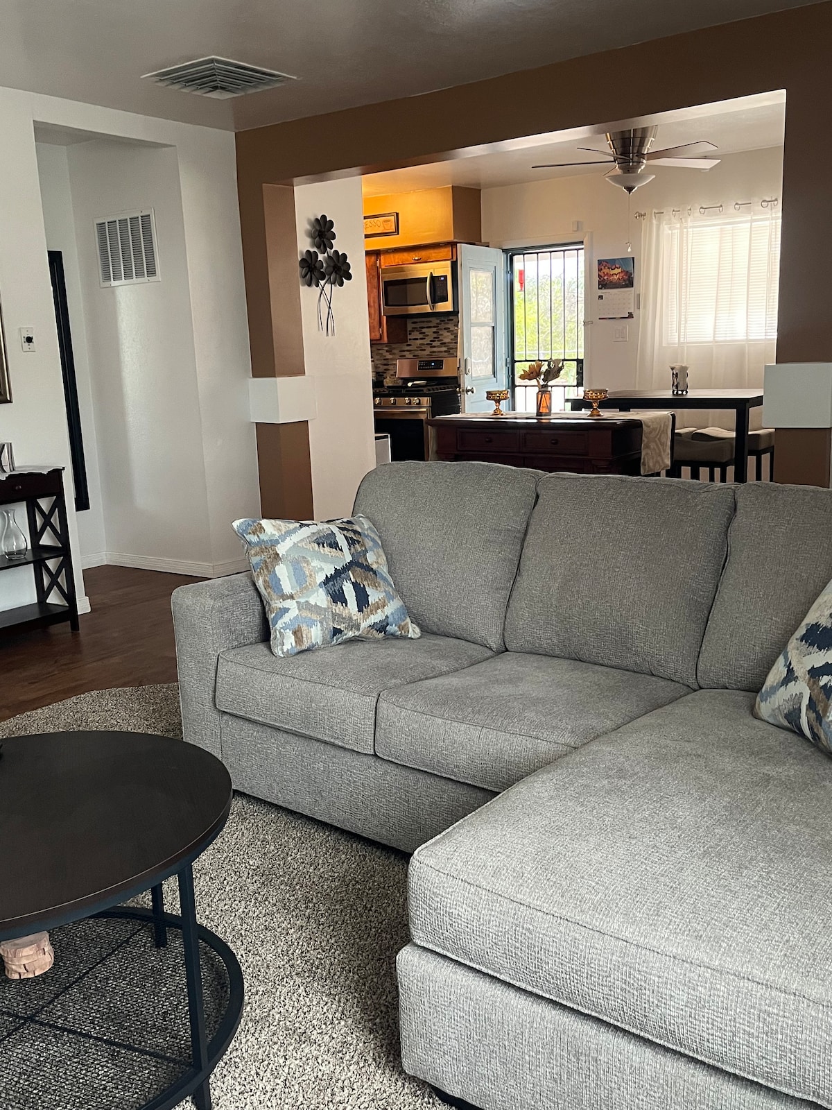 Our beautiful southwest home includes a queen-sized bed, plus a sleeper sofa in the living room. Attached to the living room is a dinning room seating 4. Additionally, we offer everything you'll need to enjoy a relaxing home away from home with a walking meditation garden, two patios for dinning, an outdoor wooden swing to relax with a morning cup of tea, a fire pit for s’mores to enjoy the gorgeous Albuquerque nights. We are near the river, trails, parks, and markets.