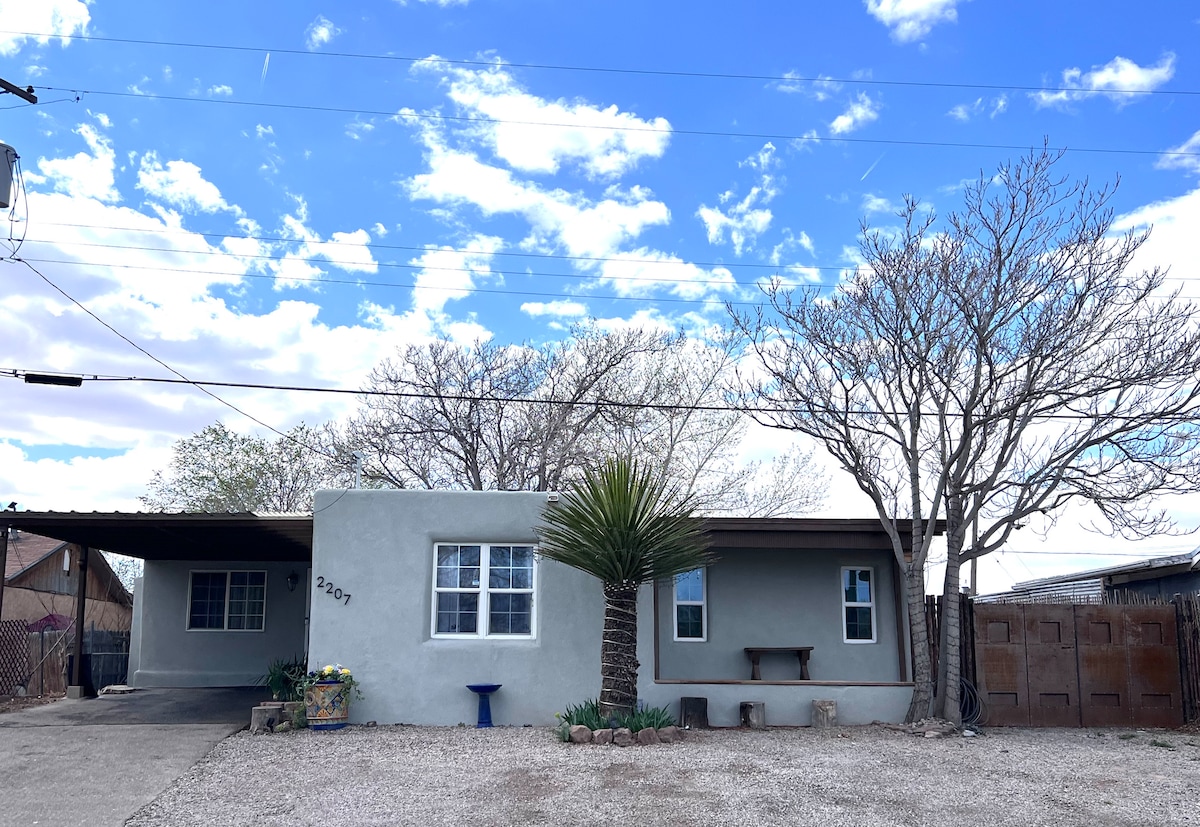 Adorable Adobe is perfect for getaways or longer stays. Completely private and quiet. The kitchen and living area have been recently updated. Beautiful vega ceilings, bright natural light, and a large yard with seating to enjoy fresh air and sun. Close to I-40 for easy access to anywhere in the city. A short 10-minute drive gets you to Old Town and many of our local museums, zoo, bio park, and artisan food hall, the Sawmill Market. Permit 144838