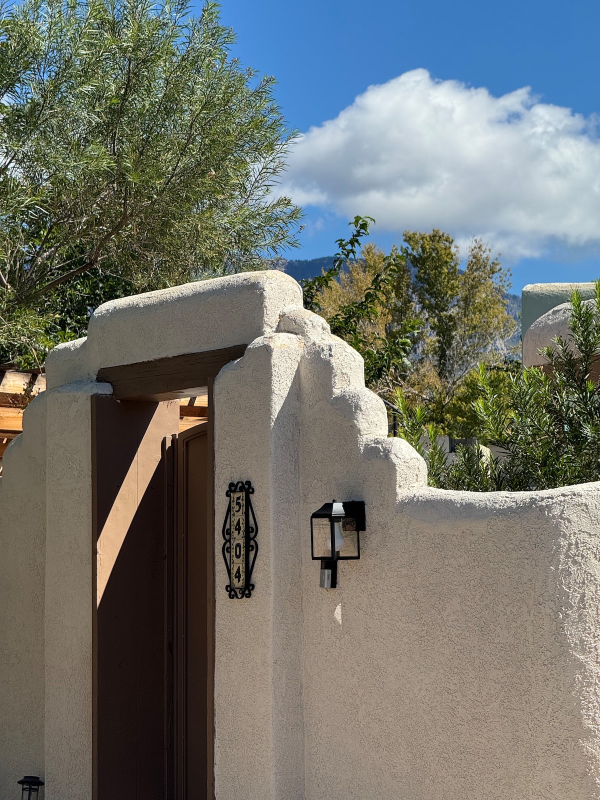 Albuquerque at its best. North Valley. Large adobe 1 bd/1 ba (1,100sq ft) private, casita guesthouse (sleeps 4). Relax under the shade of the cottonwoods. Large 1 ac property, tucked away from the city, but still centrally located. One of ABQ's safest neighborhoods. Adjacent to the "acequia" canals with miles of nature walking trails. Pool is perfect for summer. Walking distance to coffee shop, restaurant, book store, & Nature Center State Park. Close to Old Town, Downtown, UNM, & Balloons.
