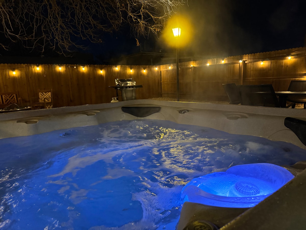 ⭐️ Relax and gather with family & friends to explore ⛰️ hiking/biking 🚴 trails and enjoy AMAZING views of the city and sunsets 🌅! Located just 2 mins north of I-40 & is a 5 min walking distance to multiple trails 🥾 in the Sandia Foothills/Cibola National Forest! Unwind in your 4-person hot tub with drinks🍷 & cozy up around the fire pit 🔥! Corn hole, mini golf ⛳️ , Kan-jam, & tons of dog 🐕 toys for the pups! 4 bed/2 ba, amazing patio with bbq, garage parking, laundry, & chef's kitchen 🍽️