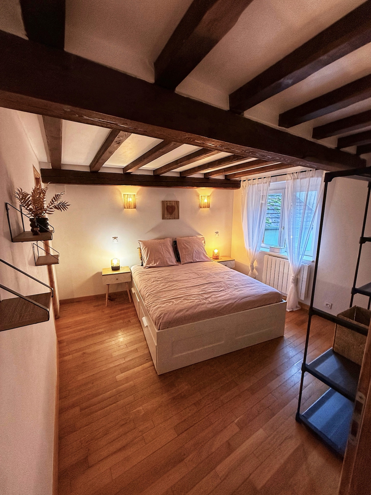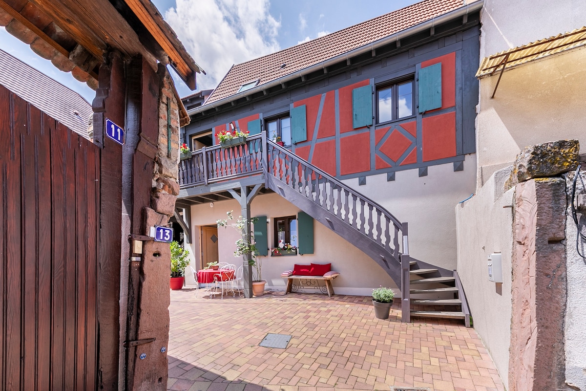 Au cœur du vignoble et à mi-chemin entre Strasbourg et Colmar, ancienne bâtisse viticole du XVIIIe entièrement rénovée. Dans ce charmant bâtiment à colombages, autrefois maison du vigneron, vous séjournerez dans un vaste duplex équipé pour 10 personnes. Doté de 4 chambres dont 2 suites parentales avec salle d'eau privative, d'un vaste salon, d'une cuisine entièrement équipée, d'une salle de bains, de 2 wc, d'une terrasse privative et d'un jardin joliment paysagée. Parking privatif.