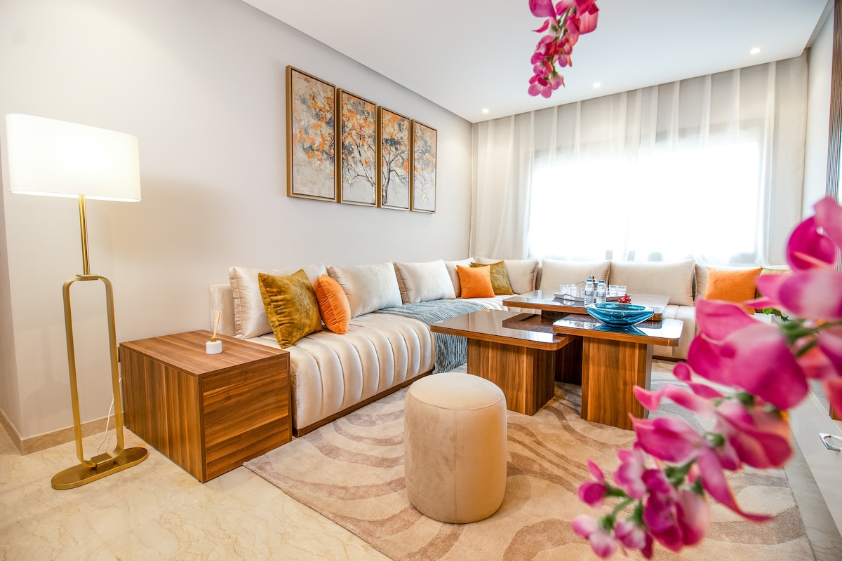 💛 La conciergerie Mi-Haven, vous presente L'Horizon, situé à Nouaceur, à seulement 5 minutes de l’aéroport Mohammed V. Ce logement moderne au sein d’une résidence haut standing avec piscine allie confort et raffinement. Profitez de la terrasse lumineuse avec vue sur les jardins, d’une literie premium et d’une cuisine équipée. Idéal pour escales, déplacements pros ou escapades cosy, chaque instant devient une expérience unique.