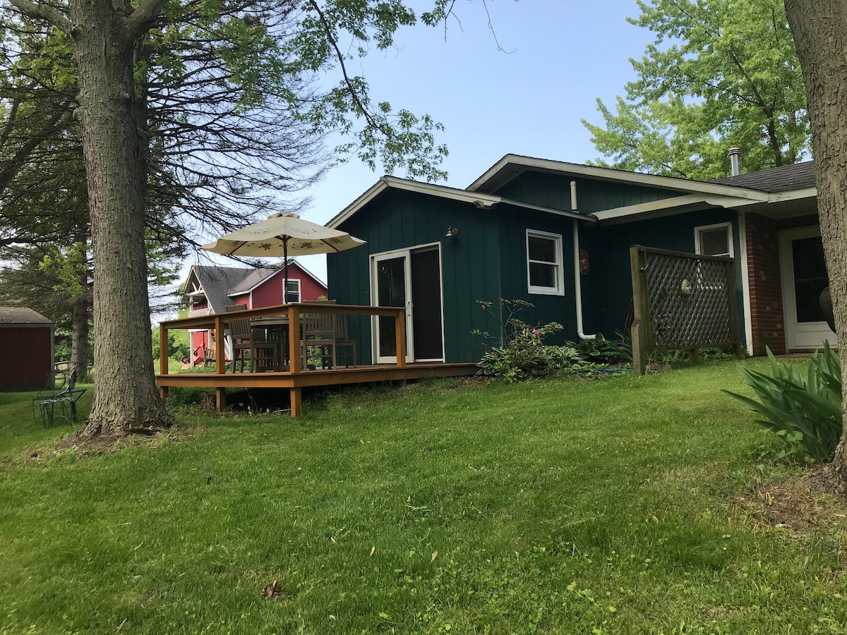 Come to the farm for peace, quiet, nature walks, bird watching, and fishing in the spring-fed 3-acre pond and find a new sense of calm. All you need is to build a fire, then sit back and relax. Winter or summer, the farm offers 10 acres of space to run around with your pups or bags, frisbee, and even a bit of golf. Kayak or canoe, too! So many wineries, bike trails, and parks are close by. End your day with a relaxing, stargazing hot tub overlooking the pond. Enjoy! 10 min east of Three Oaks.