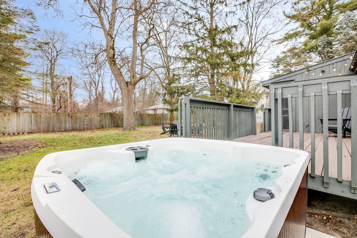 Tucked away sophisticated cabin in the heart of Downtown Union Pier. Killer location that's just steps away from dining and drinks: Black Current Bakery, Neon Moon Gelato, Union Pier Market, and Union Pier Social. Townline Beach is a 10 minute walk, and the cabin is right off the bike path. Seeds Brewery is just down the road and local Wineries are 1 mile away. Back home enjoy a relaxing hot tub (available year round), wood burning fire place, spacious screened in porch & outdoor fire pit.