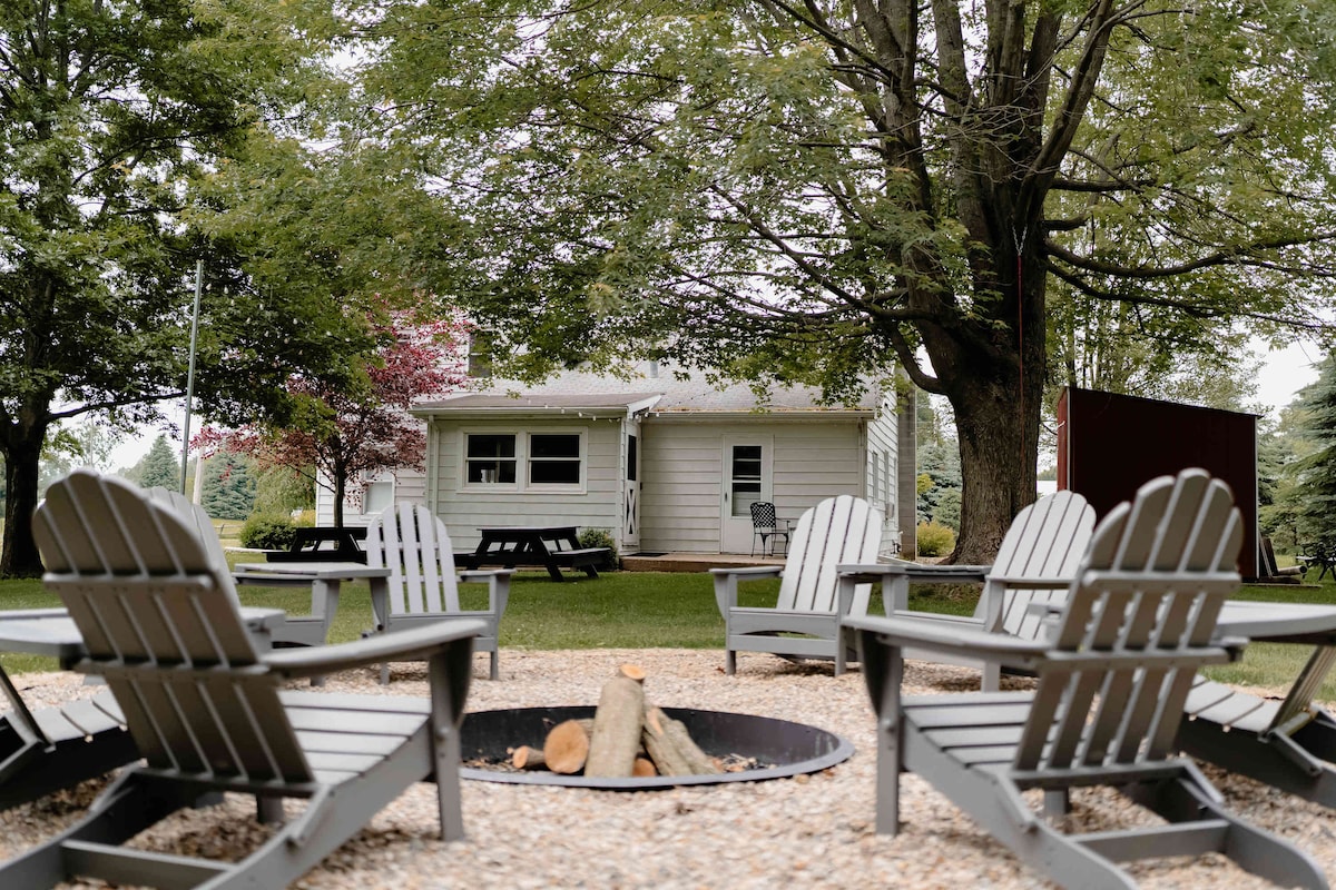 Escape to a tranquil countryside cottage on a 20-acre farm. Enjoy breathtaking sunrises from the picture window, relax in lounge chairs, and gather around the fire pit and grill or take a trail walk down to the south branch of the Galien River. Just 10 minutes from Lake Michigan, and within 5 miles of a casino and a golf course, it's the perfect retreat for nature lovers and entertainment seekers. Book now and experience rural bliss with nearby attractions!