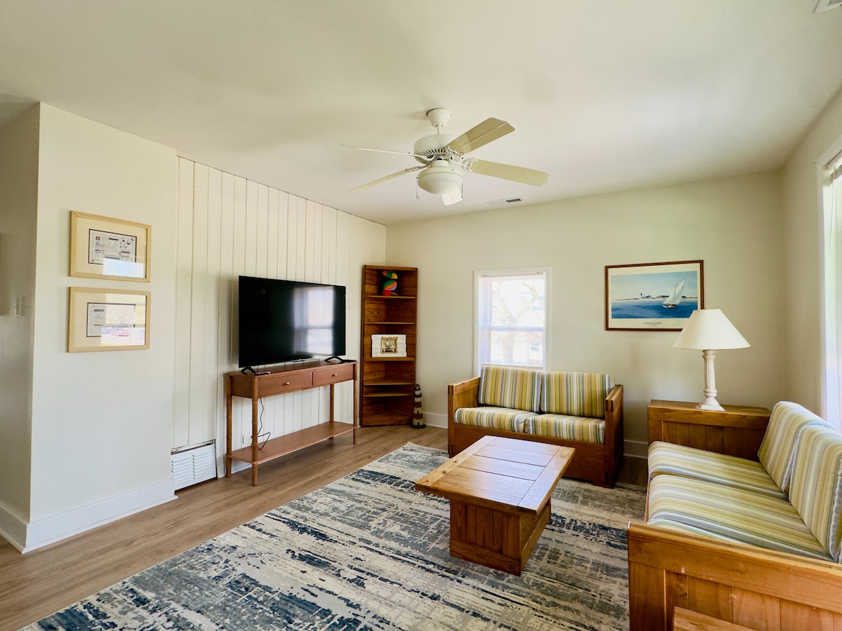 The cottages, or townhouses, are situated steps away from the main inn, providing an added sense of privacy while still feeling the vibe of the community. This cottage has two bedrooms (one with a queen bed in the downstairs bedroom + another with 2 twin beds in the upstairs bedroom). Two bathrooms (one upstairs, one downstairs) keep things fresh with a queen sleeper sofa. The upstairs loft space provides extra room for rest. An in-unit washer/dryer and high speed WiFi makes things easy.