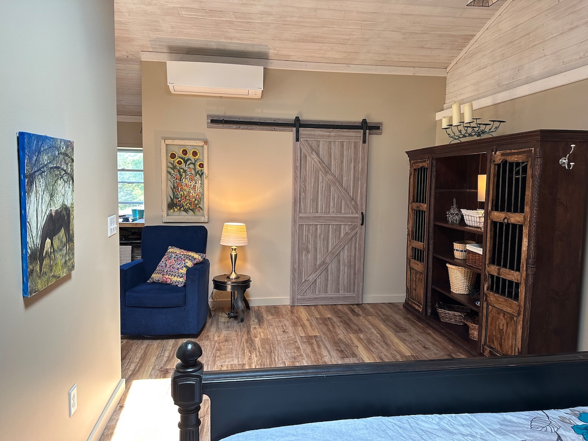 Cozy, charming, romantic and modern. Huusli is the perfect place for a couple to getaway, not too big, not too small. Soaring ceiling with wood burning fireplace greets you in the main living area with an updated kitchen, remodeled bathroom and two adorable bedrooms. Bonus is the four-season room where you can have all your meals or enjoy your morning coffee surrounded by nature, but without the fear of bugs. Make new memories, celebrate an anniversary or just relax in this magical place.
